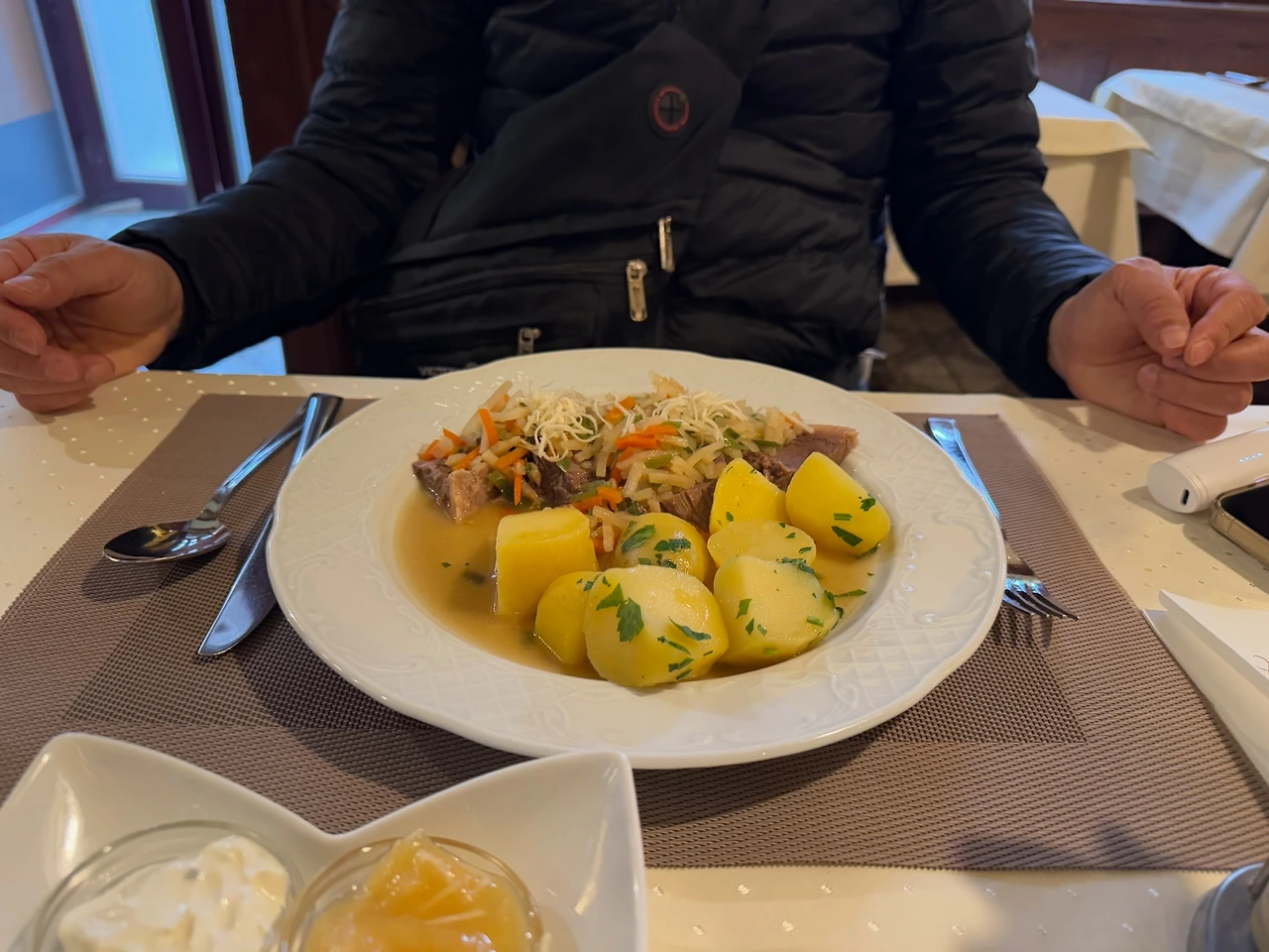 Kaiser’s(Favoritenstraße 61, 1100 Wien, 오스트리아, 구글평점 4.6) 오스트리아 정통 음식 도전, 슈니첼, 타펠슈피츠. 일단 드레싱 된 감자가 너무 맞이 좋음~~. 둘 다 재료는 소고기. 슈니첼은 돈가스와 비슷해 보였지만 never. 타펠슈피츠는 인터넷에 갈비탕. 갈비찜과 비슷한 느낌이란 설명은 음식을 제대로 표현하지 못한 것 같다. 지방이 없는 소고기를 야채와 함께 잘 익혀서 스테이크처럼 플래이팅한 독특한 음식. 단지 맛이 갈비찜 비슷하다. 오스트리아 현지 음식 적응 1단계는 성공한 듯하다.