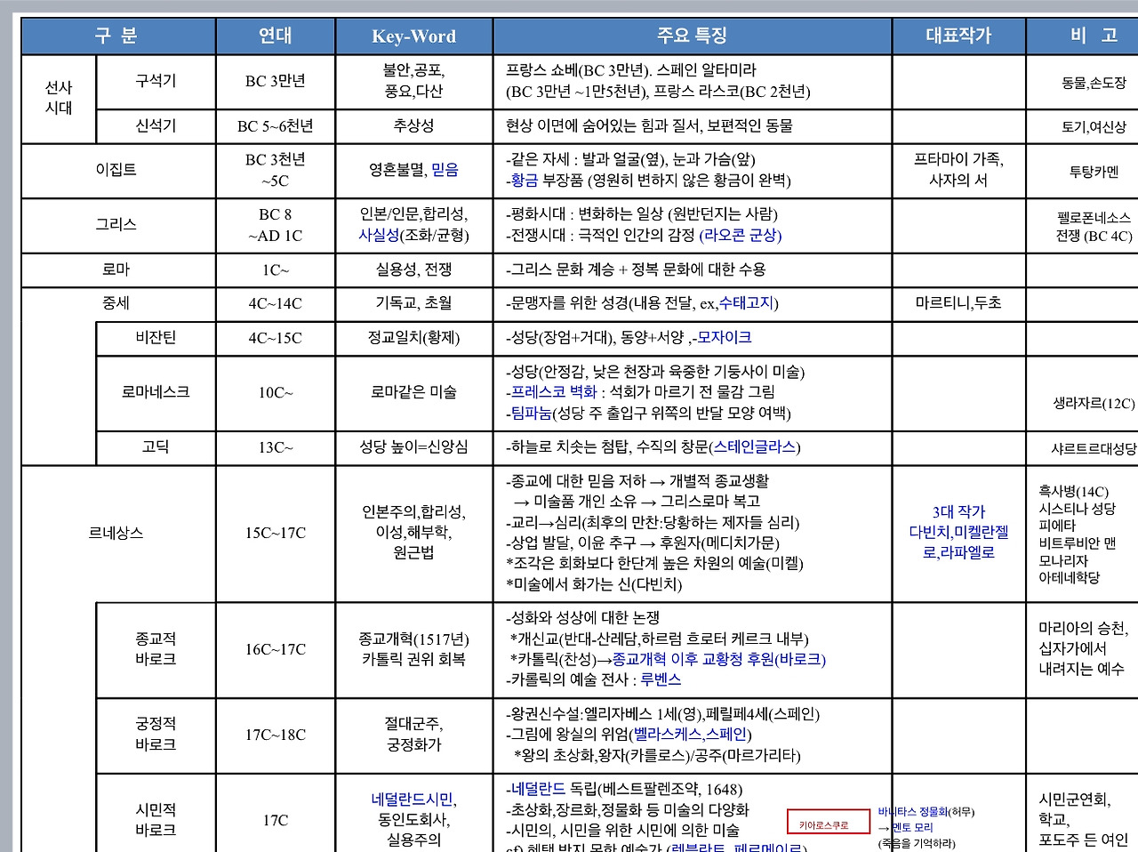 회사생활을 하면서 시간이 될 때마다 서양미술사 책을 읽으며 조금씩 메모를 해두었던 자료가 내 핸드폰 파일에 있었다. 도움이 많이 된다.