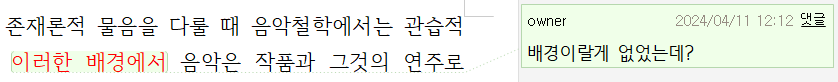 봄은 어떻게 지냈는지 기억이 잘 나질 않는데 4월 3일에 절반가량 쓴 논문을 지도교수님께 보낸 기록이 있네. 열심히 논문을 썼었나 보다. 절반짜리 논문은 참고문헌 6p를 포함해 총 44p. 한 문장 한 문장, 아니 한 자 한 자 짚어가며 코멘트를 해 주신 지도교수님의 지도에 가슴 벅찬 감동을 느꼈다. 그도 그럴 것이, 초기에 드렸던 논문은 '굳이 코멘트하지 않아도 되겠다'라는 이유로 코멘트도 받지 못했기 때문에. 같은자리를 맴돌고 있었다고 생각했는데 나의 진전은 횡(橫)적 진전이 아니라 종(縱)적 진전이었나 보다.