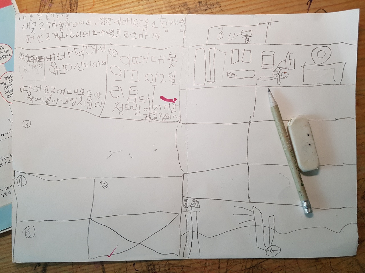 아래의 실험 계획서는 신통이가 우연히 실험 과학이라는 책을 접한 후 가족들이 모두 잠들 시간에 스스로 잠들기 전까지 스스로 책상에 앉아 스스로 작업한 중간 결과물이다. 오늘 아침인가 메탄올과 전선, 대못, 코르크 마개 등을 구해달라고 한 신통이었다.