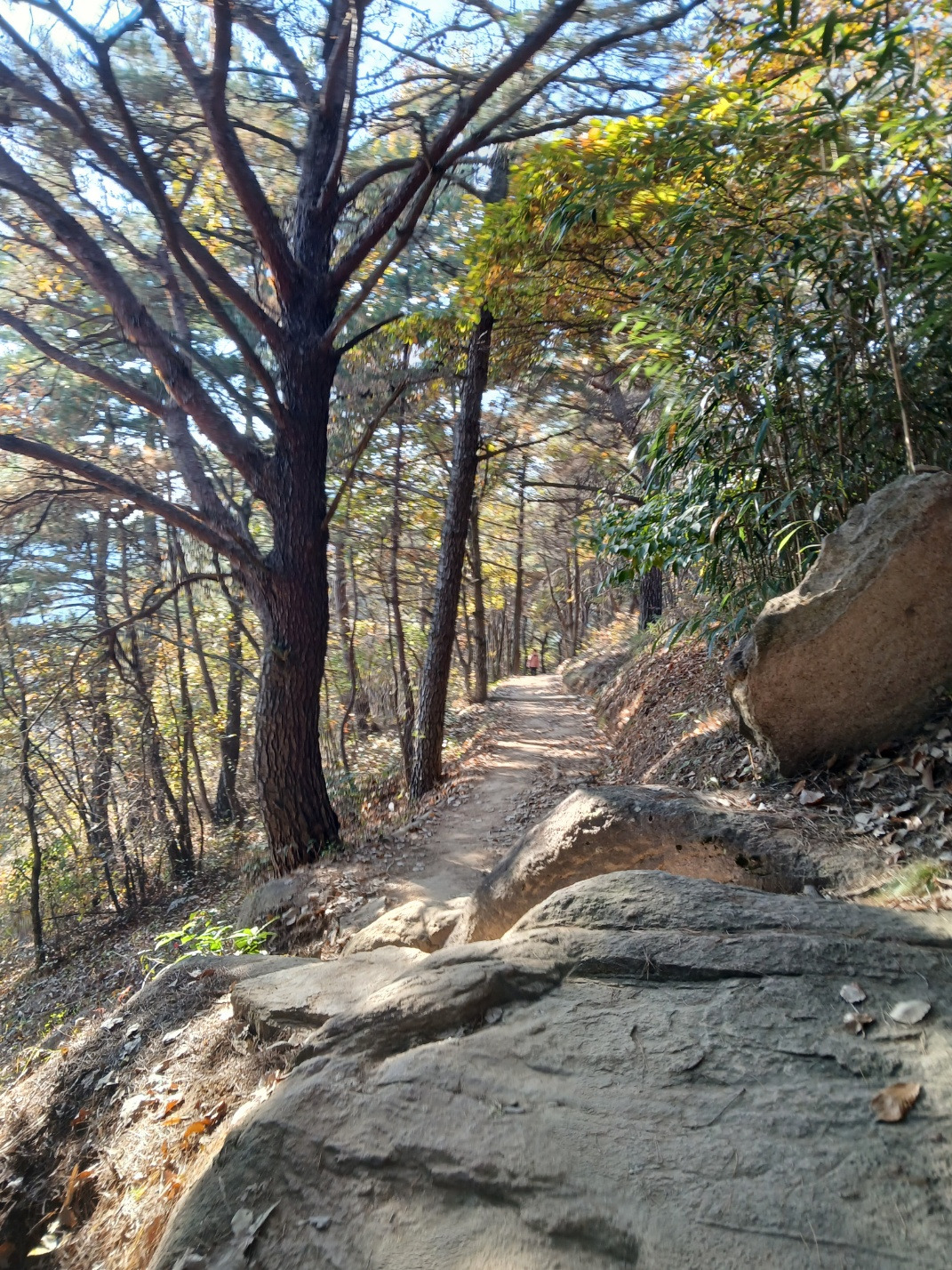 오랜만에 동네산을 등산한다. 100미터가량의 나지막한 산 중반 정도를 오르면 둘레길이 나온다. 둘레길을 나의 속도에 맞추어 걷기 시작한다. 어느 정도 걸었을까? 중간크기의 돌이 길 사이사이에 있어 조심스레 돌 사이를 비집고 걷다가 문득 오른쪽 등산화 끈이 풀린 것을 발견했다.