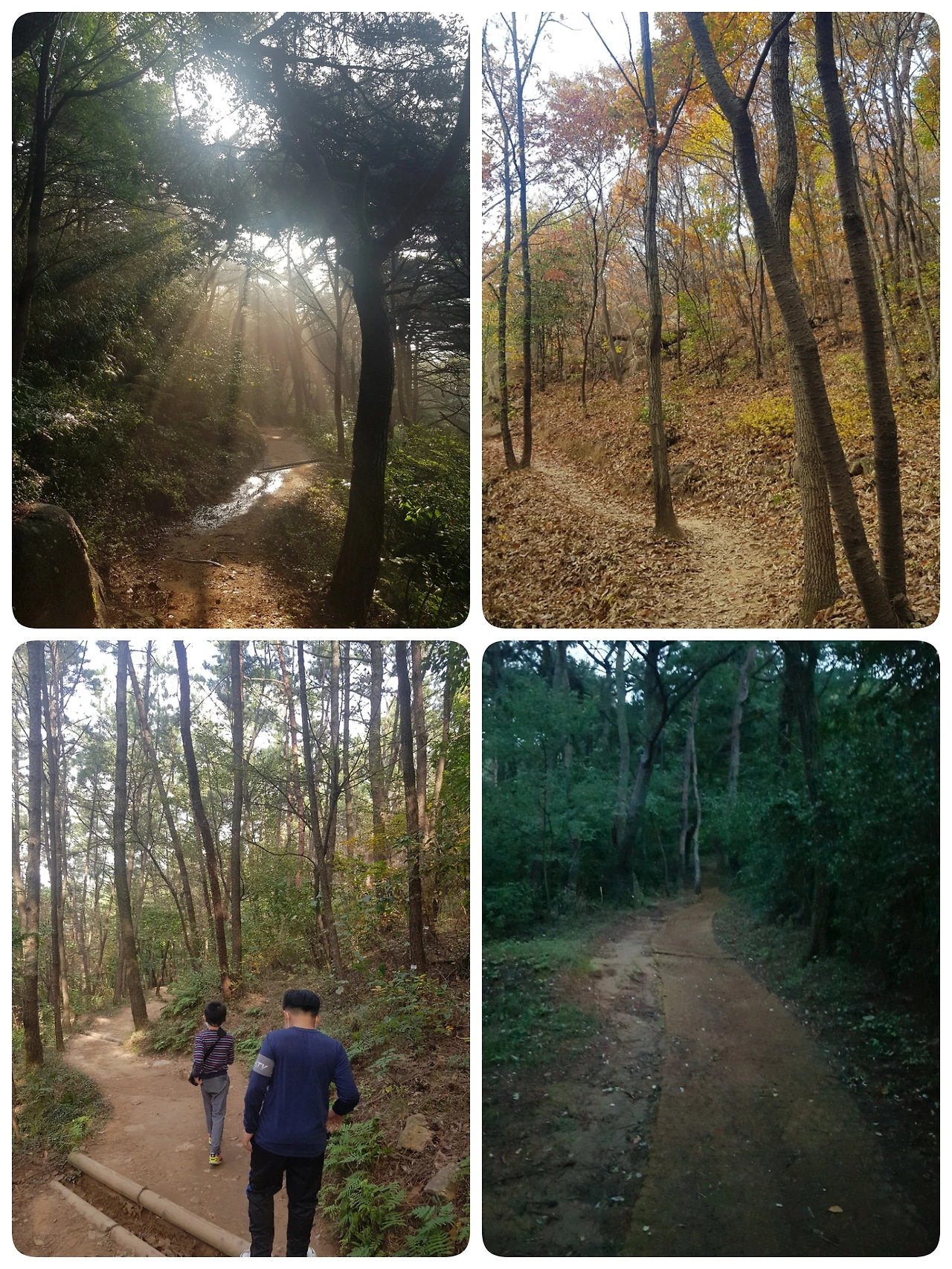 하절기가 되면서 새벽에 가는 시간은 더 빨라졌다. 5시 20분에 출발해서 두 바퀴 정도 돌면 1시간 40분 정도 걸린다. 동네 산은 133m의 낮은 동산 정도라 부담이 없다. 아직 동이 트기 전에 땀을 흘리며 걷는 이 느낌은 뭐라 말로 표현할 수 없다. 지금은 동절기라 새벽 동트기 전은 한밤중처럼 캄캄하다. 요즘은 일출이 7시로 미뤄졌다. 7시 이후에 산에 가면 남편과 아이들의 아침 준비를 못해서 해가 길어질 때까지 새벽 걷기는 잠시 중단하기로 했다. 대신 아이들 등교 후나 오후에 따뜻한 햇살을 받으며 걷는다. 시간은 대중이 없다. 그때그때 시간 되는대로 걷는다. 오로지 내 발자국 소리, 새소리, 바람 소리에 귀를 쫑긋 새우며 어떤 것에도 방해받지 않고 걷는다. 비가 오는 날도 우산을 쓰고 걷는다. 나의 감정이 다 다르듯 산도 그날의 컨디션이라도 있는지 다 다르다.
