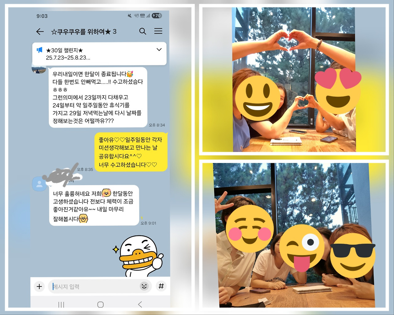 그녀들도 처음에는 할 수 있을까? 하는 의심에서 시작되었지만 시간은 어느새 한 달에 다 닿았고 그녀들 스스로도 성공했다는 게 신기하고 놀라울 따름이라고 했다.