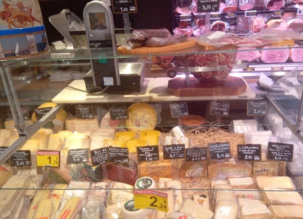 민박집주인분 말이 떠올라 요구르트 코너로 갔는데 정말이지 눈이 휘둥그레졌다. 종류가 너무 많아 무엇을 골라야 할지 진짜로 이탈리아 와서 최대의 고민거리였다. 가격이 너무 저렴하니 막 담고 싶은데 우리는 다음날 로마를 떠나니 진정을 하고 5개를 담았다.(진정되어서 담은 게 이 정도;) 앞으로 이탈리아에 살면서 부담 없이 요구르트를 실컷 먹을 수 있다는 현실이 너무 기뻤다. 요구르트 옆에 쿰쿰한 냄새가 나서 보니 이탈리아의 생햄인 살라미와 프로슈토 그 외 다른 것들이 진열되어 있었다. 겉으로 볼 땐 먹음직스러워 보이는데 냄새가... 나에게는 처음 맡아보는 냄새여서 그런지 거부감이 들었다. 치즈도 마찬가지였다. 맛보고 싶은데 냄새가... 눈은 먹고 싶다 하고 코는 먹으면 안 될 거 같다고 하고... 아.... 고민 끝에 가장 무난해 보이는 걸로 하나씩 골랐다.