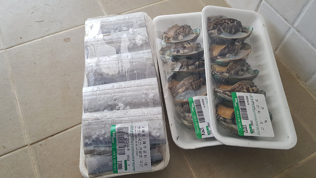 이번엔 갈치 한팩과 전복 2팩을 들고 오셨다.