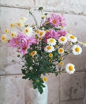 뒤뜰에 피어있는 국화를 꺾어 화병에 꼽았다.