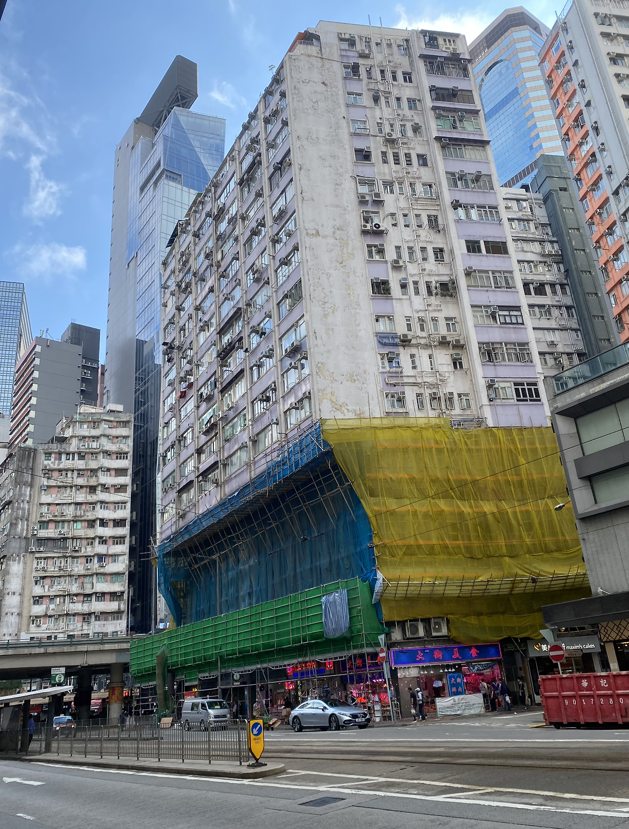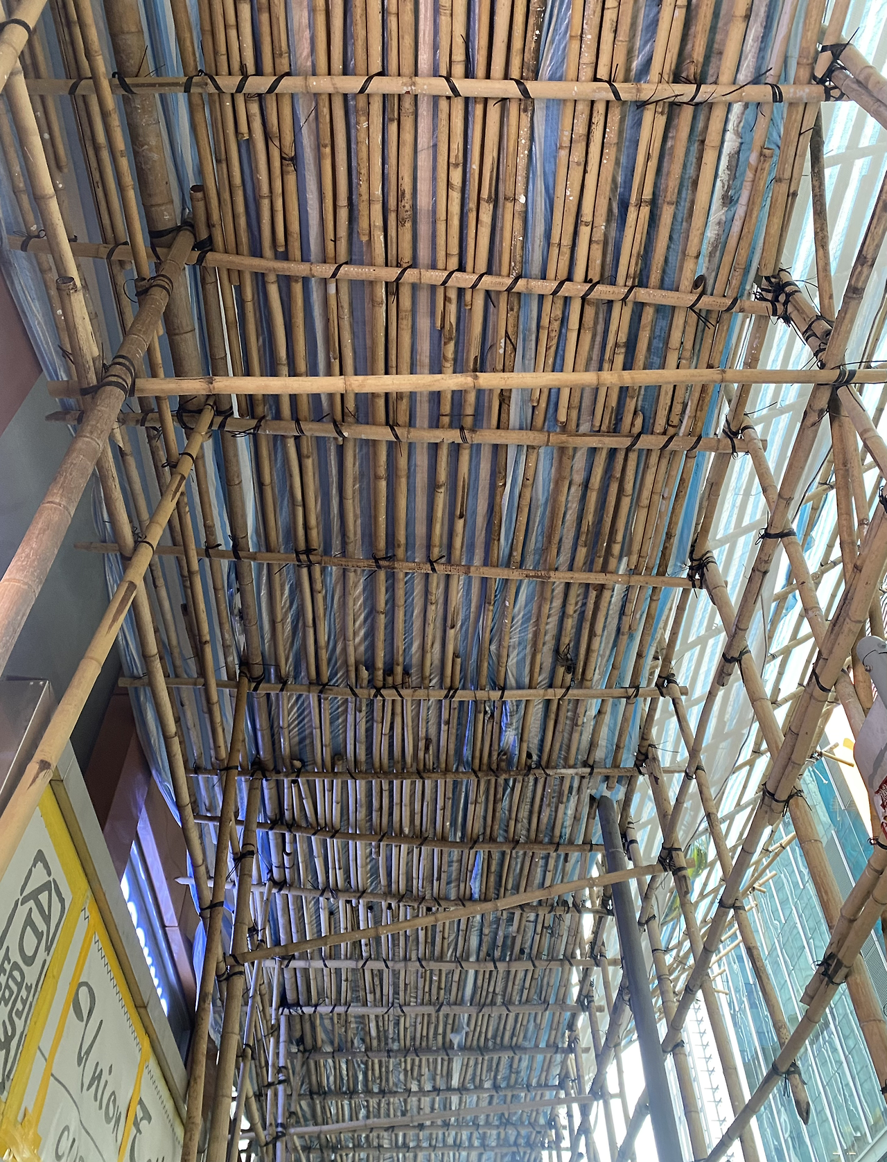 둘째 날 아침을 먹으러 차찬텡으로 향하면서 건물에 둘러친 비계를 보았다. 죽붕이라 불리는 대나무 비계였다. 홍콩 건축을 대표하는 것 중 하나인 이 대나무 비계는 자격증으로 공인받은 비계 직공들에 의해 단시간에 구축되는 걸로 유명하다. 이젠 중국에서도 안전상 문제로 사용하지 않고 오직 홍콩에서만 볼 수 있다는데 실제 보니 대나무의 경량과 탄력, 친환경적 요소보다 구축된 짜임에서 오는 질감이 오히려 매력적이었다. 약 7년간 재사용이 가능하고 홍콩에선 값싼 자재라 활용도가 높다지만 높은 탄성만큼 흔들리는 불안정적 요소가 인부들에게 과연 안전할까란 생각 또한 들었다.