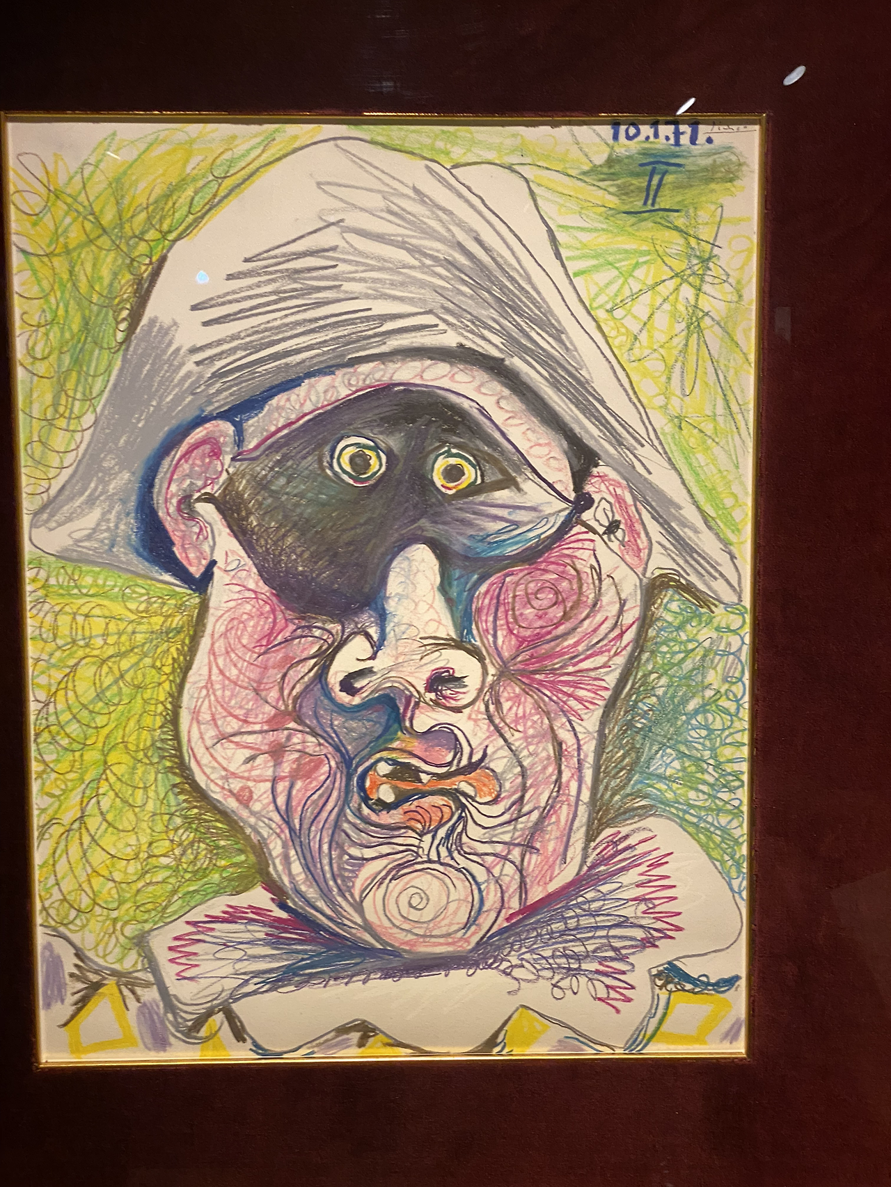 더럽지만 순수하고 나이 든 어리숙함이 보였다. 빠진 이, 모인 눈, 벌어진 콧구멍과 더러운 얼굴 표면의 제스처와 색은 파스텔 연필로 표현한 배경의 연두 녹색, 광대가 입고 있는 옷의 노란색과 대비되면서도 어울려 사의의 본질을 표현한다. 나는 이 그림이 삶을 오래 살았던 사람이 거울을 보듯 그린 그림이라고 생각한다. 또한 오래 살아온 삶의 본질을 표현하고 있다고도. 아기가 자라면 어린아이가 되고 청년이 되고 성인이 되지만 아이인 청년, 아이인 성인, 아이인 노인이 되는 것이 인생인 것이다. 다만 거울은 깨달음의 방편이기도 하지만 착각의 도구이기도 하니. 그래서 내가 느끼는 그림 이상의 무언가가 그림에서 표현되는 것을 넘어 있다고 생각하는 것은 아마도 내 착각일지 모른다.