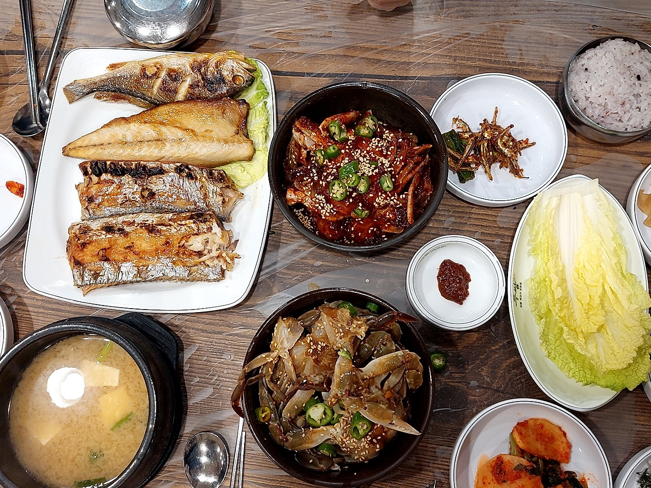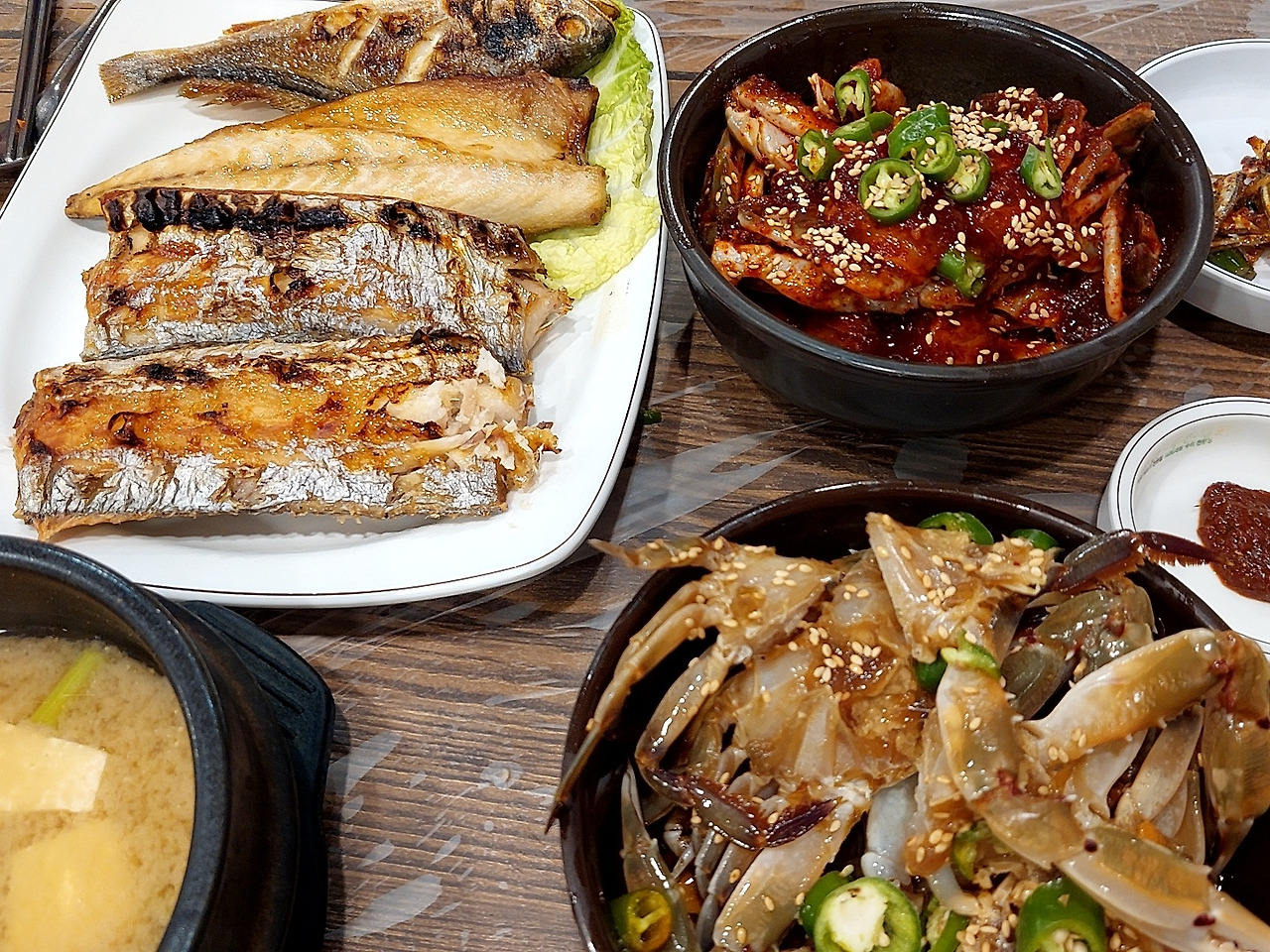 (우리 일행을 행복하게 해 주었던 게장 백반과 생선구이) 나는 엊저녁에 필요 없다는 말을 곧이곧대로 듣지 않고 검색해서 찜해 놓은 식당으로 안내했다. 시청 근처에 있는 맛집이었다.