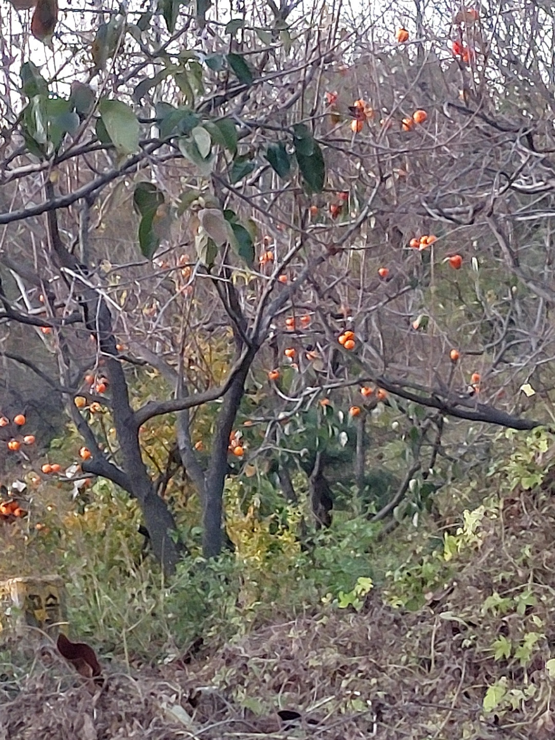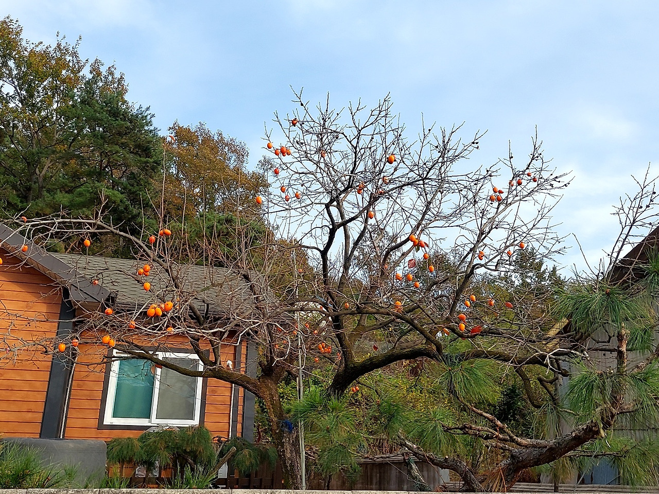올해는 감이 많이 열리지 않았다고 하더니 근처 감나무 밭에도 작년처럼 열린 나무가 드물었다. 감나무에 열매가 없으니 나무가 휑했다.