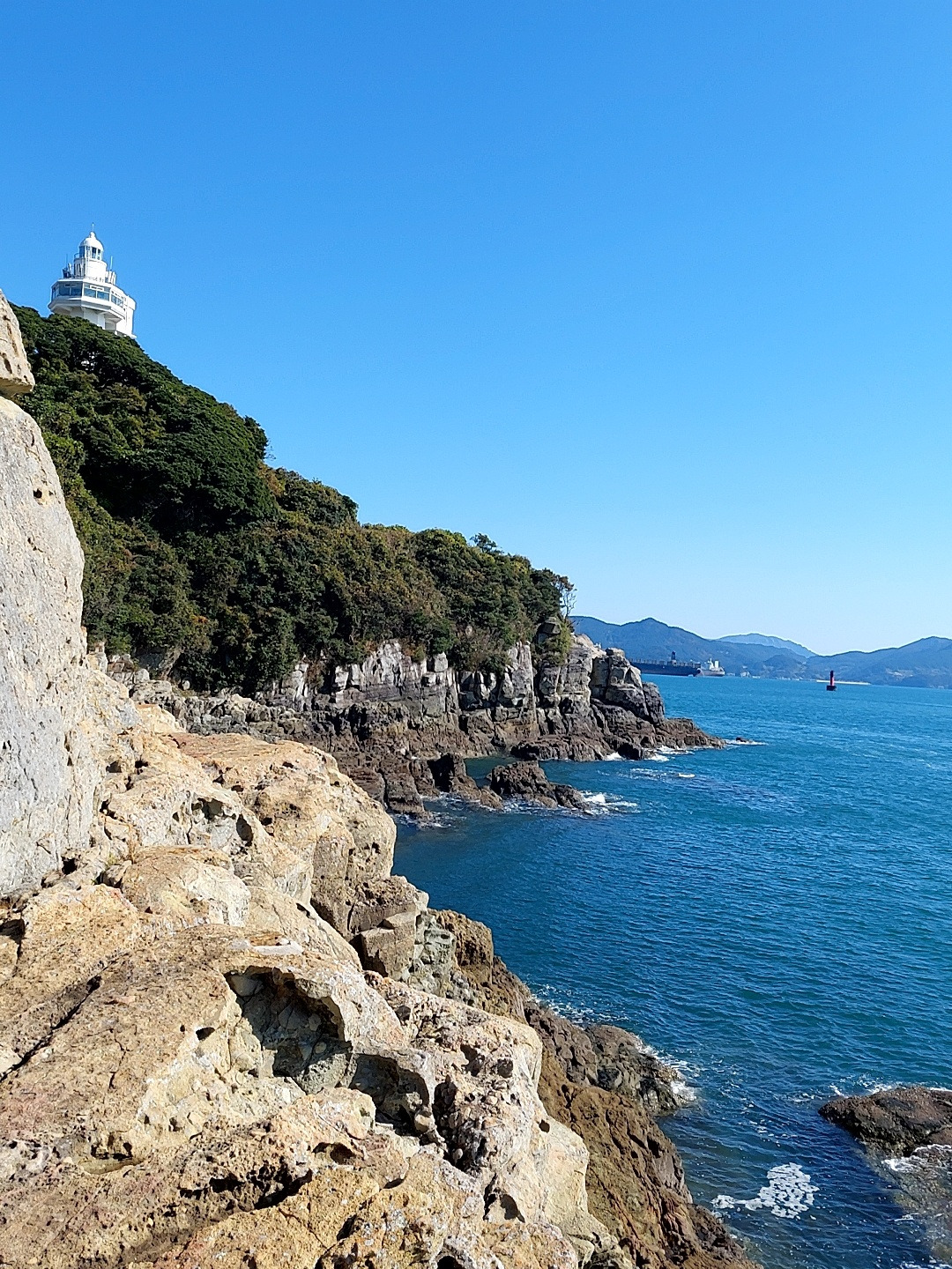 -부산에 동백섬 둘레길하고 다른 멋이 있네, 바다 색깔도 희한하다. 파란 색도 아니고 소라색 비슷하제 그렇제?
