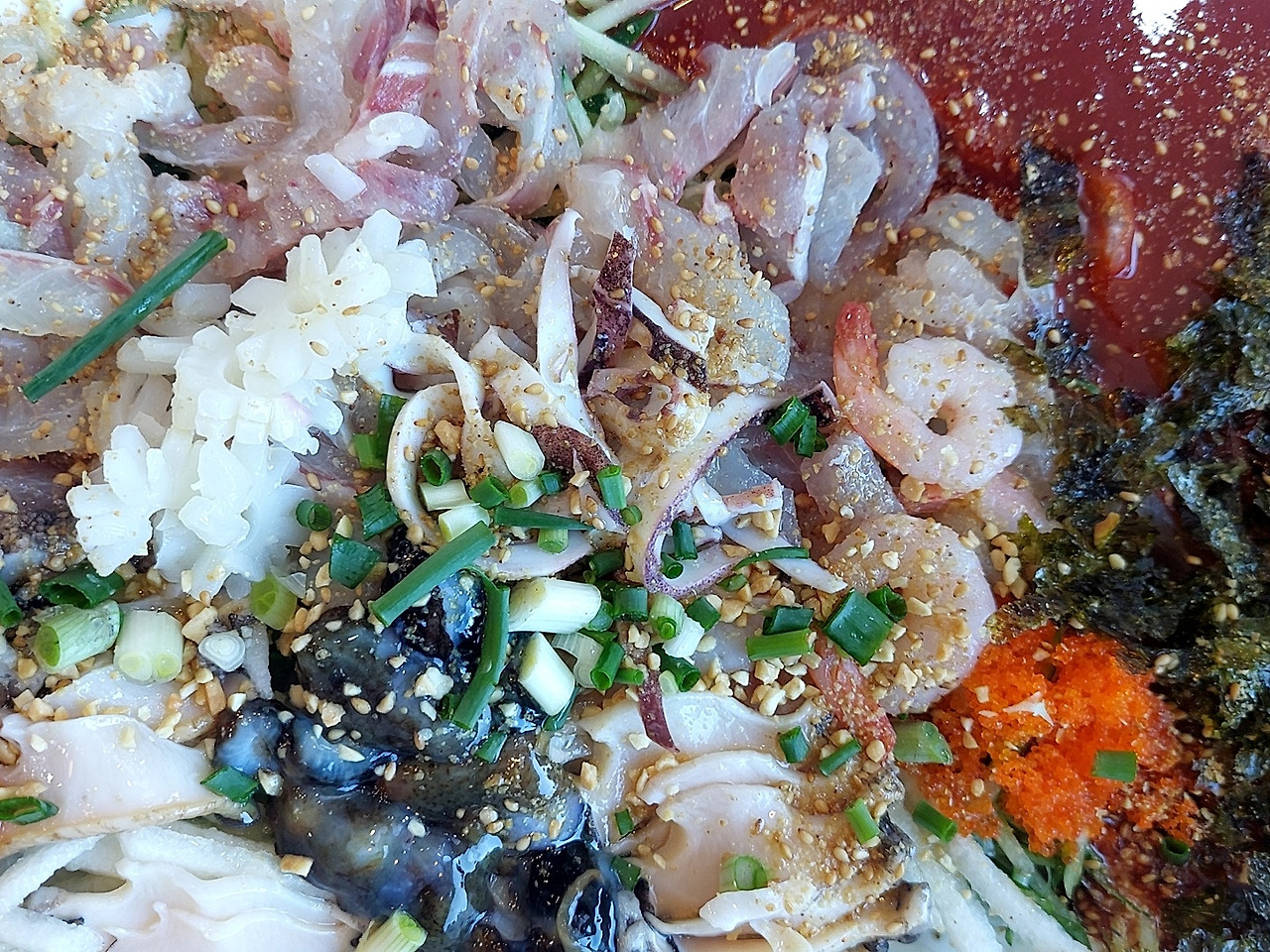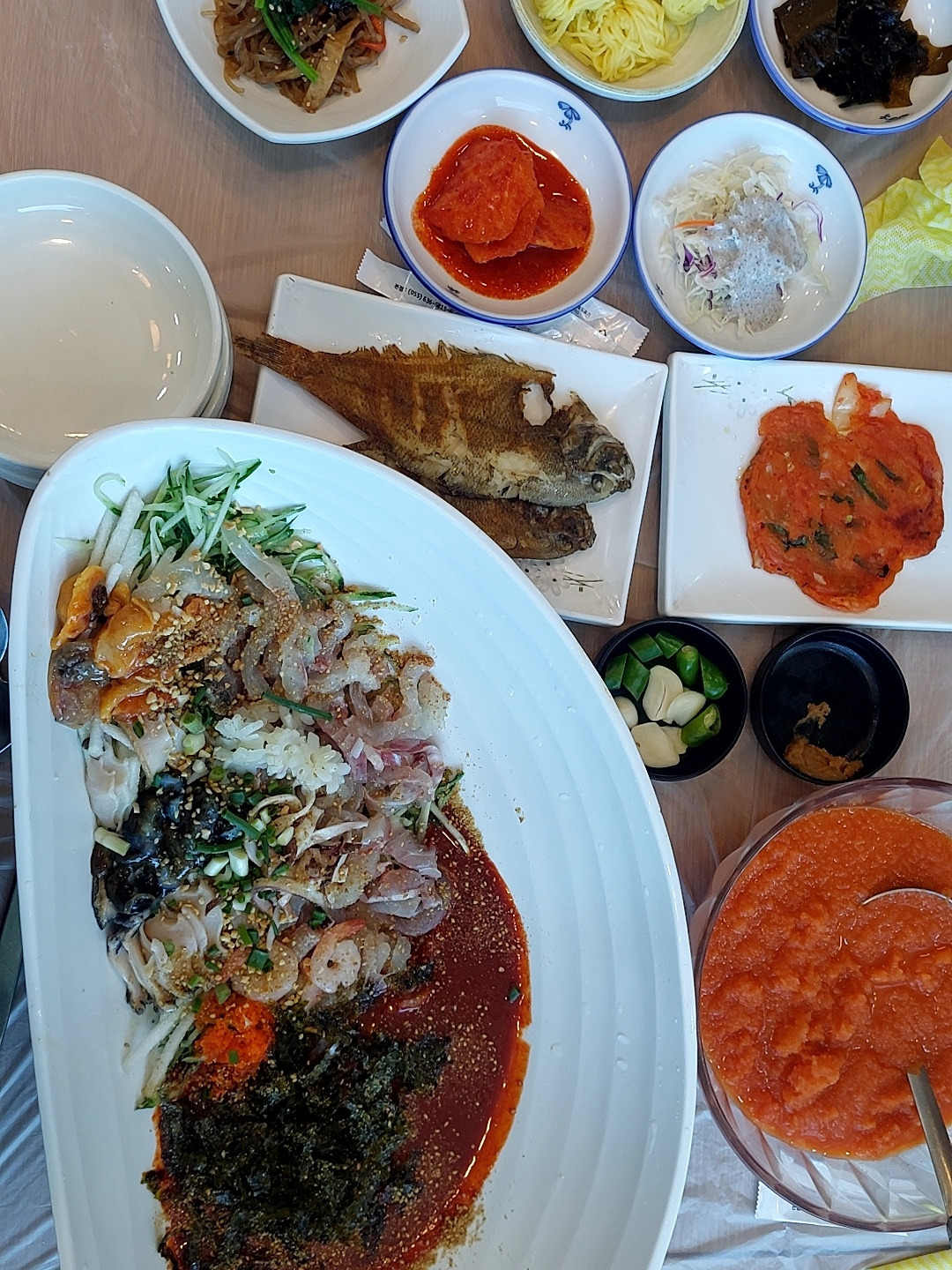 식물원에서 나와서 시매부가 알려준 숙소 근처에 있는 물회 집으로 갔다.