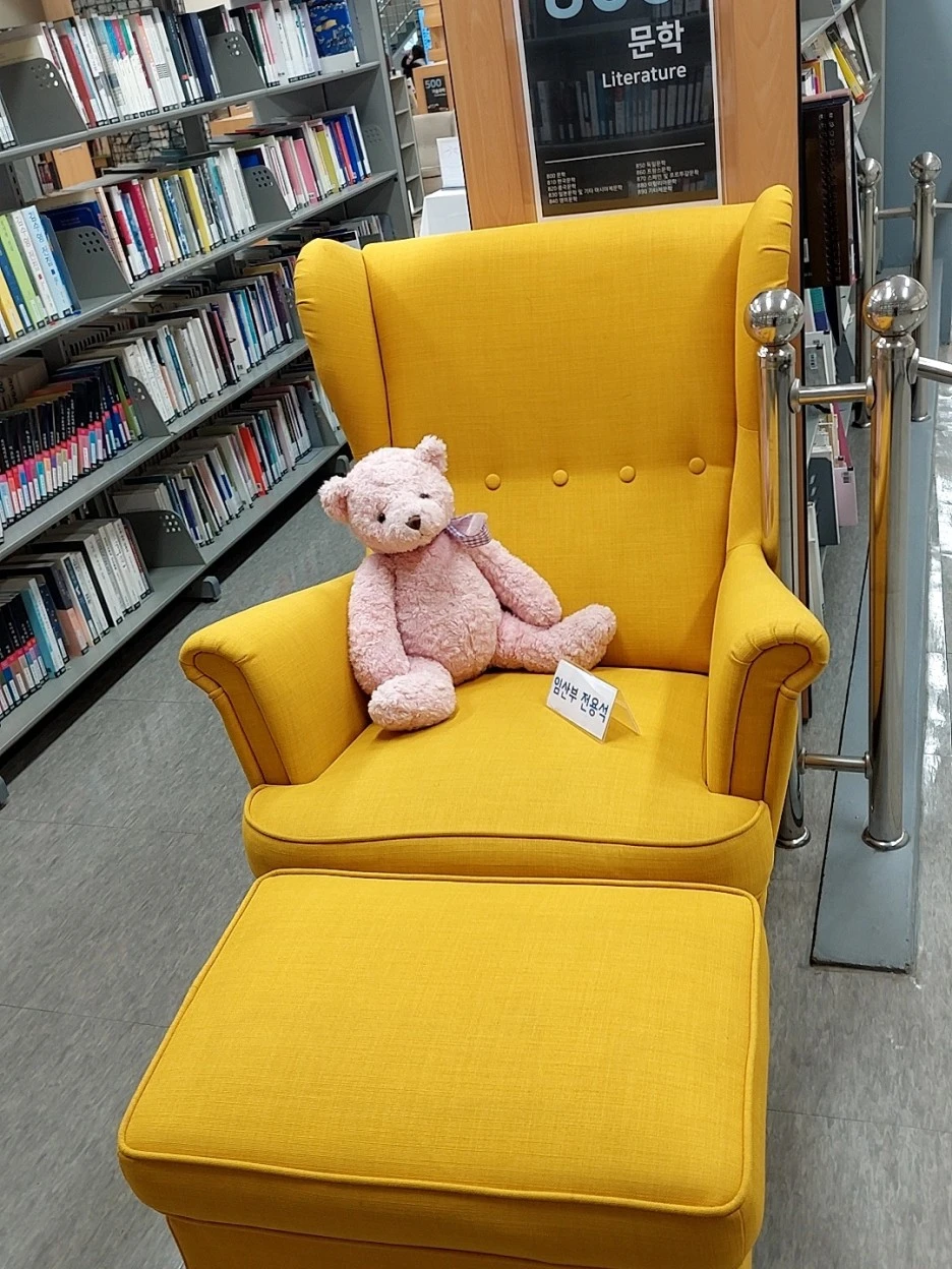 출근 시간이 되어 책을 제자리에 꽂아 두려고 갔는데 책꽂이 옆에 임산부 좌석이 있었다. 원래 거기에 있었는데 내가 못 본건지, 아니면 최근에 마련한 것인지는 모르겠으나 임산부 좌석을 보니 마음이 따뜻해졌다. 예비 엄마들이 뱃속의 태아와 함께 편하게 책을 읽으며 행복한 시간들을 많이 보내면 좋겠다. 좌석의 주인공이 책을 읽는 상상을 하며 사무실로 발걸음을 재촉했다.