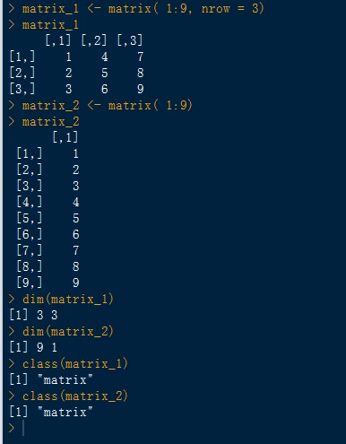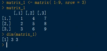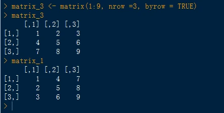 matrix_3 <- matrix( 1:9, nrow = 3, byrow = TRUE)