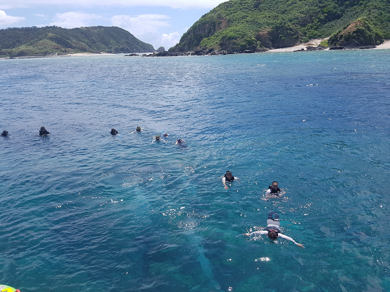 나 혼자서 바다를 헤엄쳐 다니고 싶었지만, 초심자였기에 가이드가 이끄는 대로 따라다녀야 했다.