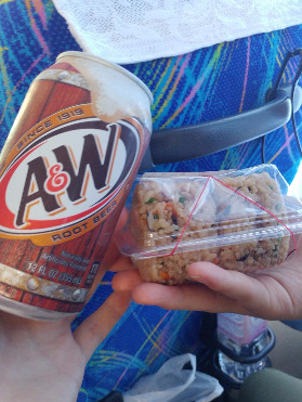 마트에서 산 간식. 왼쪽은 A&W 루트비어인데, 맥주는 아니고 '오키나와 콜라' 정도로 생각하면 되겠다. 호불호 강하게 갈리는 맛인데, 맛보는 것 정도는 해 볼만하다고 생각한다. "하나만 사도 충분하다."