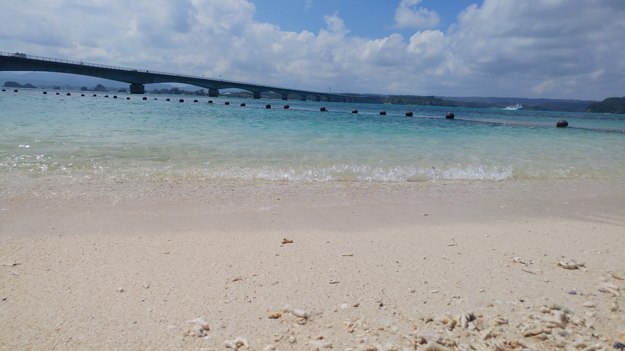 다리 아래쪽으로는 흰 백사장이 널려 있고 투명한 바닷물이 찰랑거린다. 지난 1년 동안 이런 맑은 광경을 보고 싶어서 끙끙 앓았었는데...소원성취했다. 다만 샌들을 신고 가지 않아서 발을 담가 보지 못한 것이 한이다. ㅜ