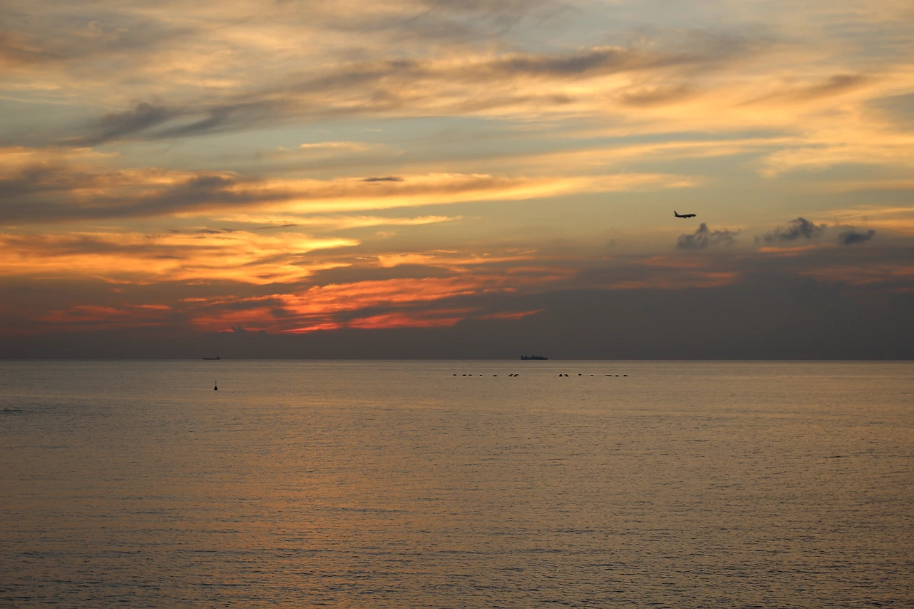 이름에 걸맞게 '선셋비치'에서 해가 넘어가고 있는 모습을 지켜보고 있으면...정말이지..감동적이다. 두터운 구름이 두둥실 떠있었고, 이따금 이착륙하는 비행기들이 그 사이를 가로지르며 화룡점정을 찍어준다. 오렌지빛-핑크-적갈색으로 물들어 가는 수평선을 배경으로 떠다니는 배를 보면 마음이 편안해진다.