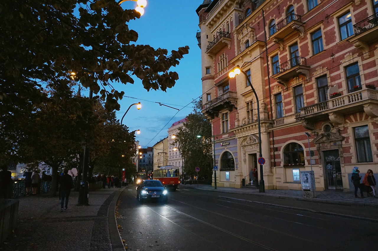 프라하는 정말이지 정말이지... 예쁘고 아름다운 도시이다. 첫날 기숙사에서 걸어 나와 저녁거리 사러 가면서 느꼈던 감정은 잊을 수가 없다. 아담한 사이즈의 건물들은 파스텔톤으로 알록달록했고, 시원하게 트인 창문에는 꽃 장식으로 꾸며둔 것이 보기 좋았다. 밤에는 오렌지색 가로등이 도시 전체를 밝혔고, 유럽풍 길거리와 잘 어울렸다. 그리고 도시를 누비는 빨간색 올드 트램은 언제 봐도 반갑다. 어스름 질 무렵, 까를교가 지나는 블타바 강을 바라보며 체코 생맥주를 마시면 신선놀음이 따로 없다.