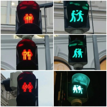 체코에서 교환학생으로 머물면서 비교적 가까운 오스트리아 비엔나로 여행을 떠났다. 도시를 이곳저곳 누비며 탐방을 하고 있는데, 함께 여행하던 친구가 신기한 것을 발견했다. 횡단보도 신호등 사인에 하트가 그려져 있다는 것이다. 그래서 나도 신호등을 유심히 살피기 시작했다. 정말 신호등 사인에는 두 명의 사람 사이에 하트가 그려져 있었다. 별 것도 아닌데 괜히 앙증맞고 귀여워 보였다. 그런데 그 사이에 잠깐 나는 이상한 점을 발견했다. 일반적으로 남녀가 그려진 사인이 아니라, 신호등 안의 두 인물들 모두 치마를 입고 있었기 때문이다. 처음에는 빛이 번져서 잘못 본 줄 알았다.