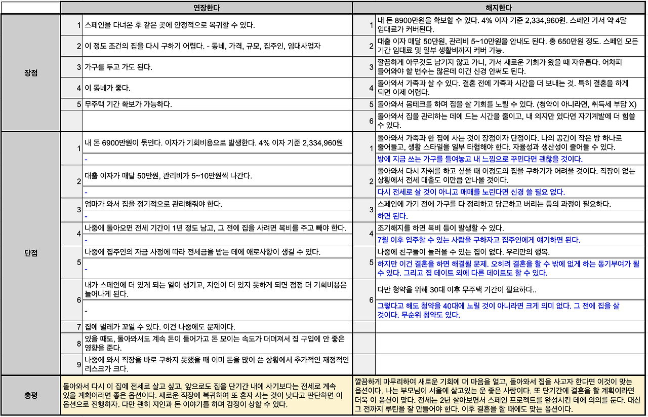 하지만 중요한 선택은 그렇게 하면 안 된다는 것을 알기 때문에 이렇게 꼼꼼하게 각 선택지의 장단점을 비교해 본다.
