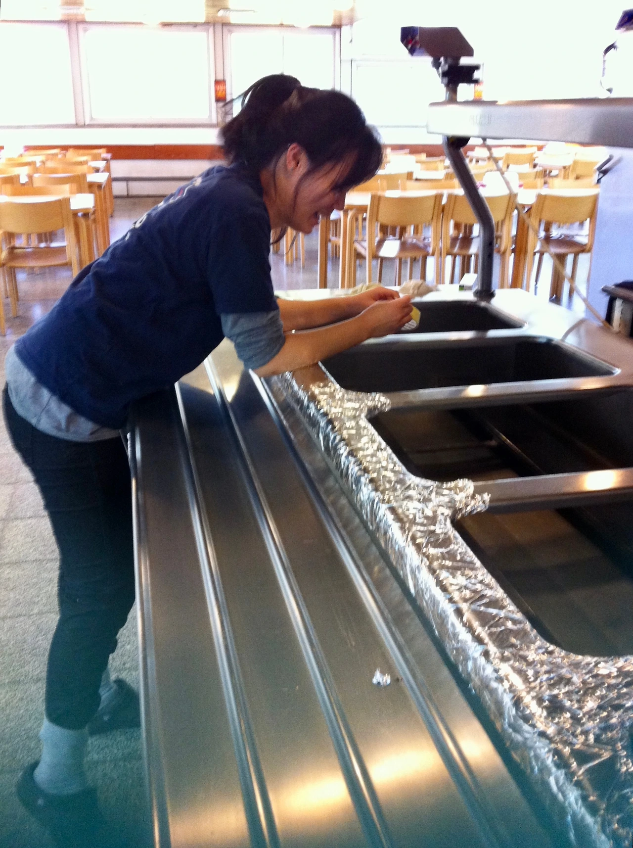 다이닝룸에서 내가 주로 맡게 될 일은, 콜드키친과 핫키친에서 만들어진 음식을 급식대로 서빙하고, 음식이 떨어지기 전에 바로바로 채워 넣는 일과 점심 식사가 모두 끝나면 의자를 테이블 위로 올리고 식당 물청소를 하는 일, 그리고 다이닝룸 1층의 공용 화장실을 청소하는 일이었다... 다른 모든 일에는 자신이 있었는데 화장실 청소만큼은 자신도 없고 정말이지 하고 싶지도 않았다. 하지만 하기 싫은 일이라고 안 할 수도 없기에 처음엔 코를 막아가며 청소를 하게 되었는데 나중에는 나름의 노하우가 생기기도 했다.