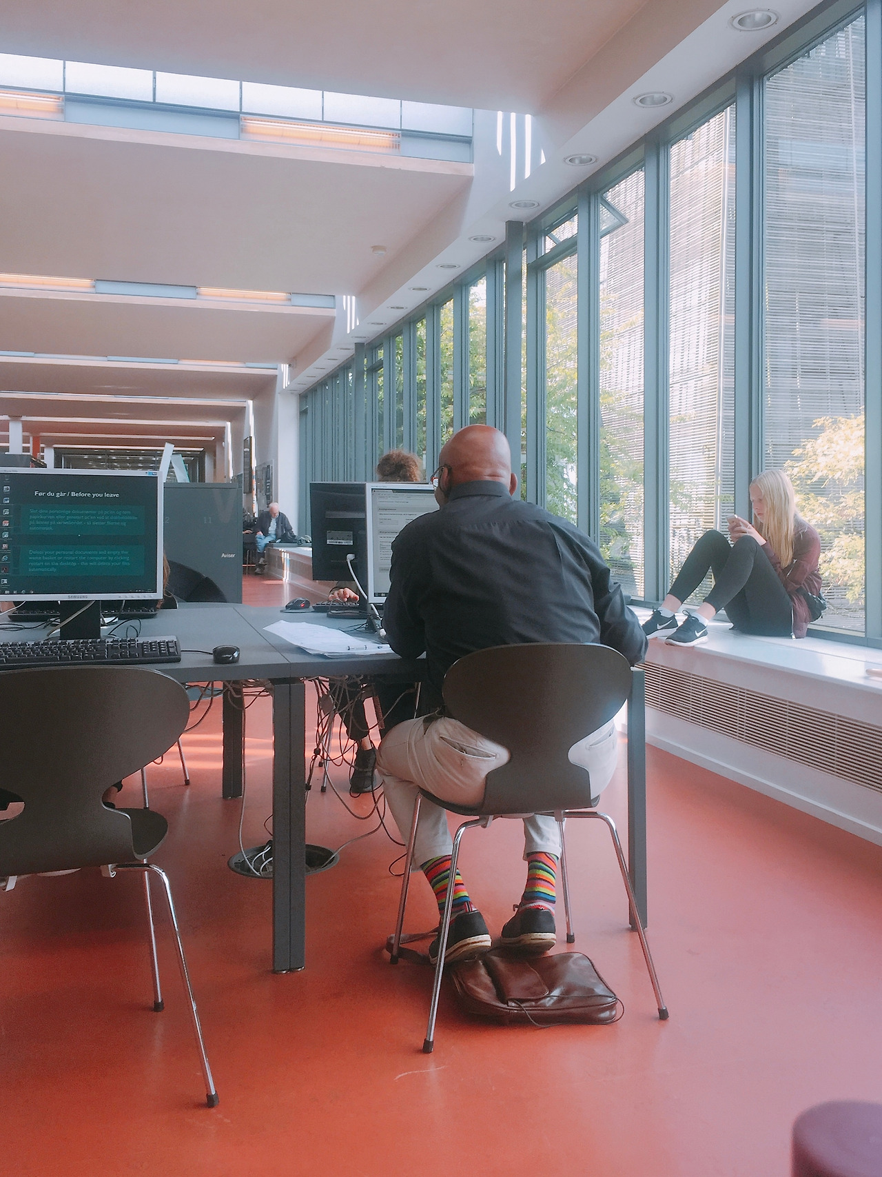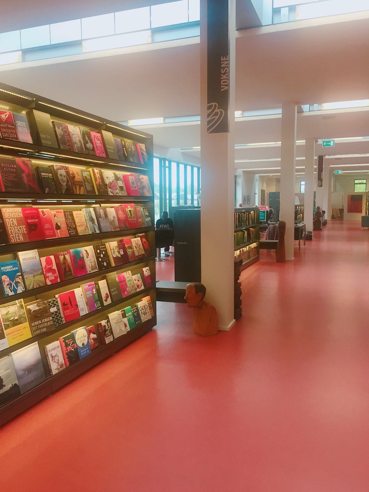 우산 없이 다니며 동네에 있는 작은 샵들을 찬찬히 구경했고, 제일 기대가 되는 도서관으로 향했다. 도서관 건물 1층에는 극장이 있었고 계단을 한층 걸어 올라가면 Albertslund 도서관이 나왔는데, 작은 마을임에도 불구하고 도서관 내부는 높은 천장과 큰 유리창으로 구성되어 있었으며 적절한 가구들이 배치되어 전망 좋은 북카페에 온 듯한 느낌이 들었다. 집 근처에 이런 도서관이 있다는 건 정말이지 큰 행운이 아니었나 싶다. 굳이 코펜하겐 시내에 있는 도서관까지 가지 않아도 되니 교통비가 절약되기도 했고, 카페에 가지 않아도 되니 커피값이 절약되기도 했다.
