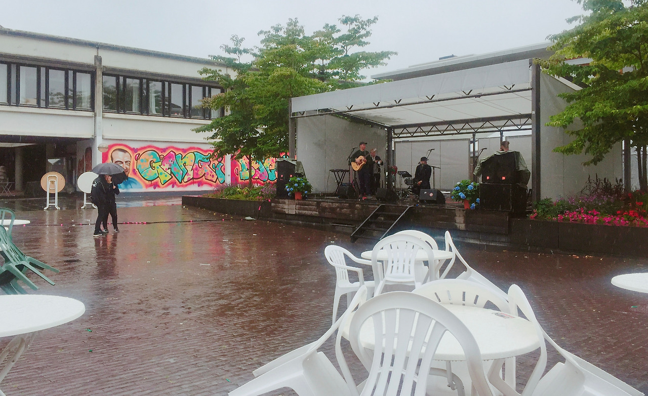 주택들이 즐비한 곳에서 조금 걸어 나와 고등학교를 지나고 작은 천을 끼고 길을 따라가다 보니 왼쪽부터 큰 마트와 정육점, 미용실, 케밥 가게, 할랄 마트, 펍, 과일가게, 안경집, 옷집, 구두 가게, 약국, 노인요양시설, 커뮤니티, 영화관까지... 규모가 크지 않아도 이 작은 마을에 없는 게 없었다. 심지어 이날은 가랑비를 맞으며 작은 밴드가 마을 중심에서 공연을 하고 있기도 했다.