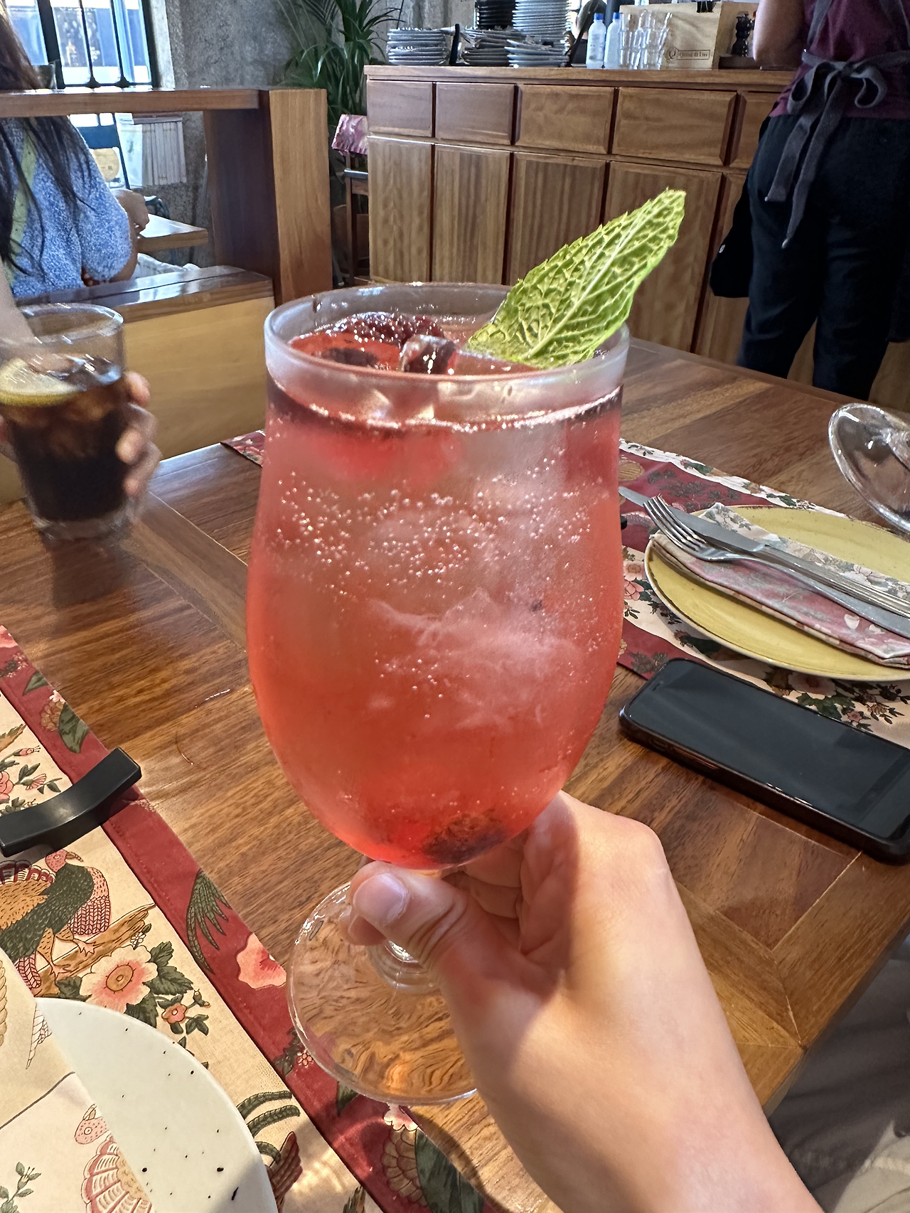 그 외에도 새우, 고기 등 다양하게 시켜서 먹었다. 그리고 스파클링 와인도 한잔 곁들였다.