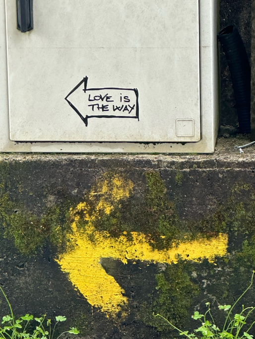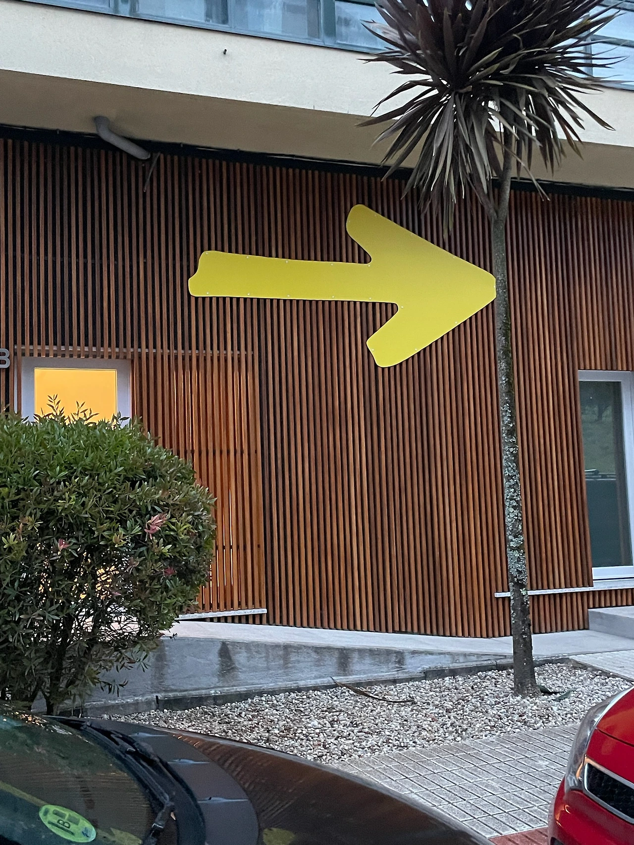 모퉁이 돌자마자 만난 건물 외벽의 노란 화살표가