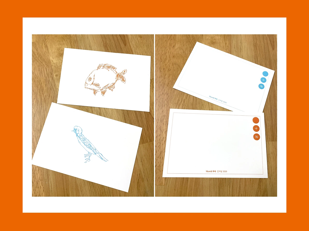 개중 가장 마음에 드는 두 장을 고르고, 컴퓨터로 다시 선을 따 엽서에 올렸다.