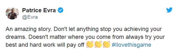박지성의 절친이자, 맨체스터 유나이티드의 레전드 파트리스 에브라 역시 자신의 소셜미디어를 통해 “놀라운 이야기다. ‘어디서 왔는가’는 중요하지 않다. 항상 최선을 다하고 열심히 노력한다면 좋은 결과가 있을 것이다”라고 덩과 마빌을 응원했다.