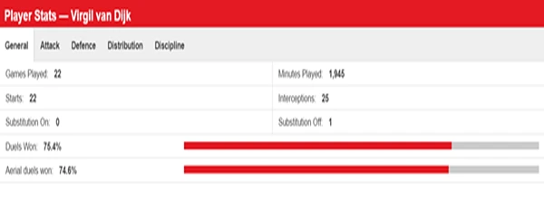 리버풀은 반 다이크와 함께한 50경기서 33승 7무 10패를 기록했다. 올 시즌 리그 22경기 전 경기에 선발 출전한 반 다이크는 무려 18승에 기여했는데, 리버풀이 올 시즌 리그에서 허용한 골은 단 10골에 불과하다.