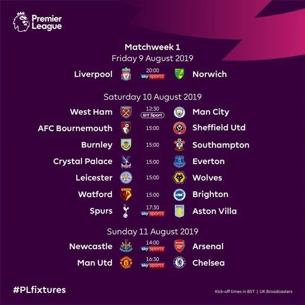 지난 13일 잉글리시 프리미어리그 사무국은 2019-20 시즌 일정을 확정·발표했다. 새 시즌 프리미어리그의 포문을 여는 개막전은 지난 시즌 준우승팀 리버풀과 챔피언십(2부리그) 우승을 차지하며 프리미어리그로 승격한 노리치 시티의 맞대결이다.