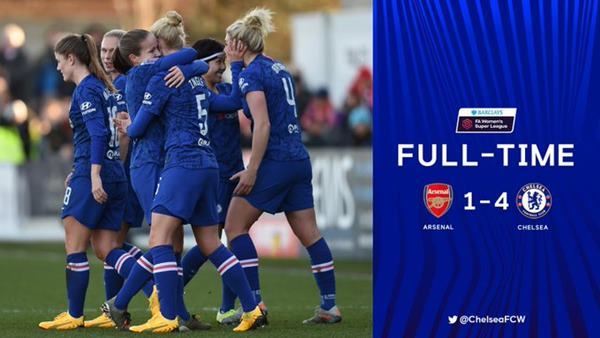 19일(이하 현지시간) 메도우 파크서 펼쳐진 ‘2019-20 잉글랜드 여자슈퍼리그(WSL)’ 아스널과의 13라운드 원정경기서 첼시가 전반에만 3골을 퍼부으며 4-1 완승을 챙겼다.