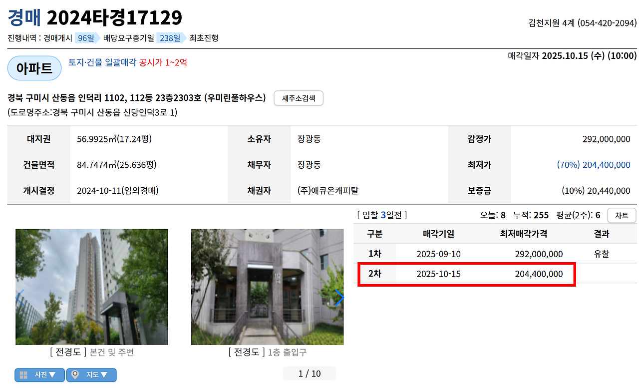 그래서 모의 입찰할 물건으로 구미 아파트를 발견했다. 이 물건은 내 전략대로