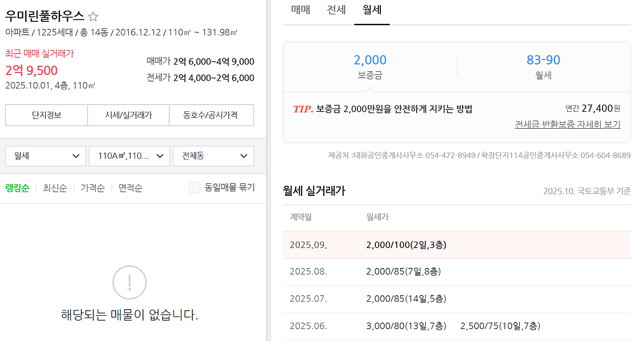 월세는 매물자체가 없다..
