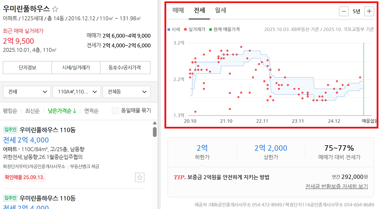 현재 이 아파트는 전세는 2억 4,000만 원에 형성되어 있고