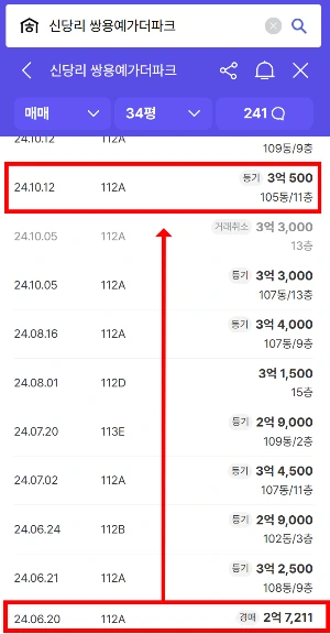 실제로 그때 이 구미 쌍용예가더파크 아파트는 7월 23일에 잔금 납부를 하고 10월 12일에 3억 500만 원에 매도되었다.