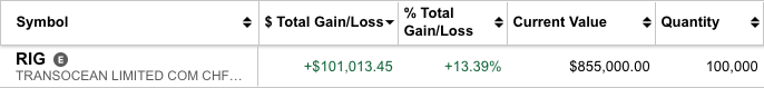 7월 7일 포스트에서 적었던 RIG의 주가가 꾸준히 상승 중이다. 나는 40,000주였던 롱포지션을 현재 100,000주까지 늘렸다. 7월 31일 RIG의 Q2 실적 발표가 예고되어 있기 때문에, 다음 주에는 주가 움직임이 클 것으로 예상한다.