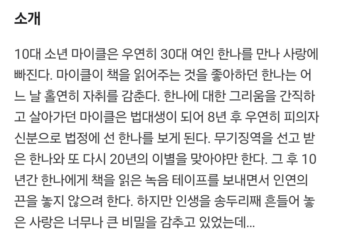 한마디로 슬프지만 야한 마이클과 한나의 사랑보다는 인연 story.