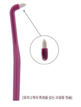 교정용 칫솔 one tuft는 원래 교정 장치를 장착한 환자의 용이한 양치질을 위해 고안되었다. 일반적인 칫솔의 세정 범위가 장치 근처의 좁은 부분까지 미치지 못하는 한계를 극복하기 위한 대체 칫솔이다. 칫솔모의 크기가 만년필 촉과 같이 작아 접근성이 일반 소아용 칫솔보다도 좋다.게다가 치간 칫솔과 다르게 칫솔모의 강도가 제법 있기 때문에 좁은 공간으로의 침투력도 좋다. 연필잡듯이 쥐고 조작할 수 있기 때문에 편의성에 있어서도 치실보다 상대적 우위에 있다. 특별하지 않아 보이는특장점들이 우리 아이의 양치질을 구석구석 꼼꼼하게 해주는데 큰 도움을 준다.
