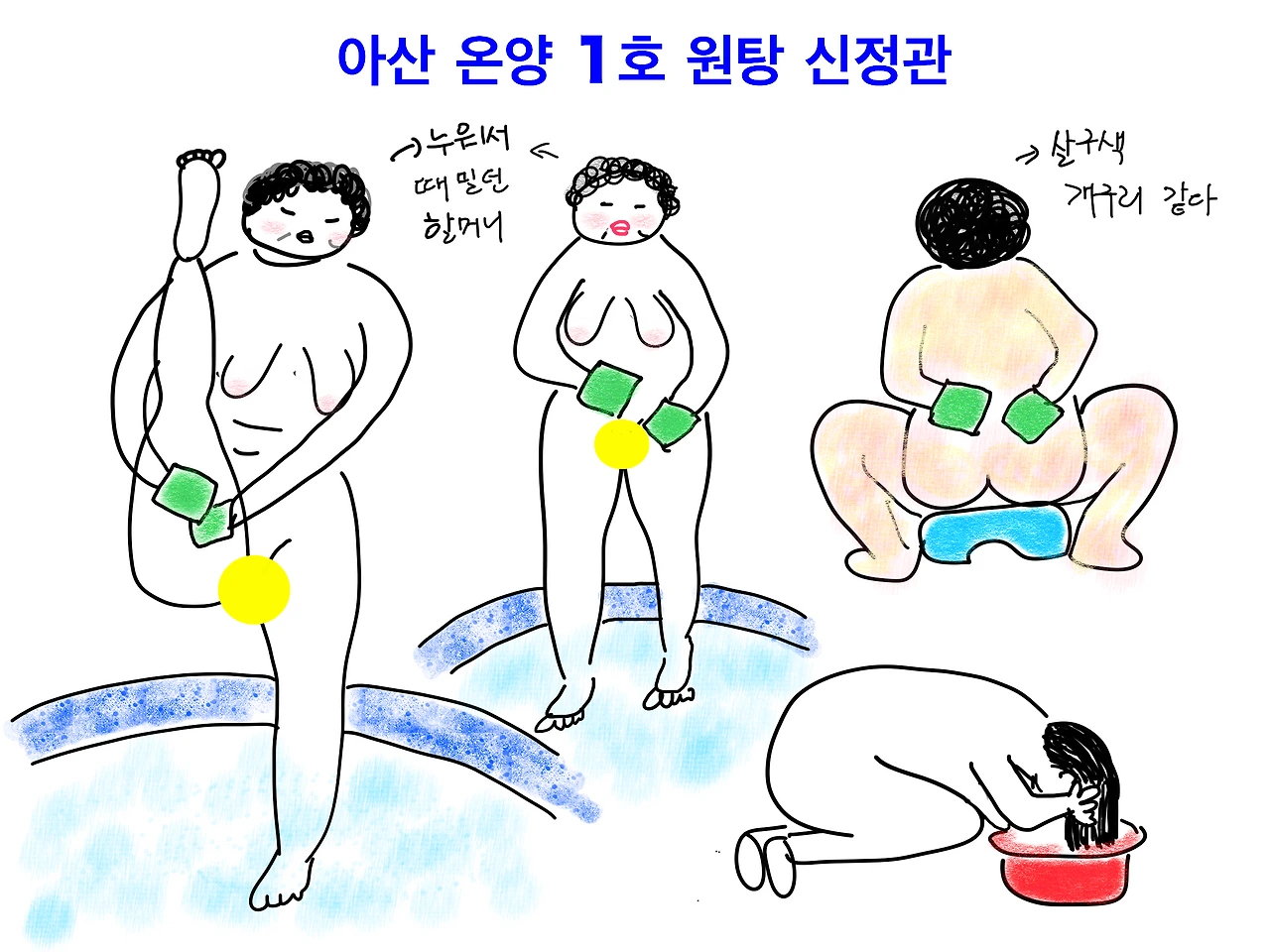 기상천외한 자세로 때를 미는 할머니가 단연 최고였다.