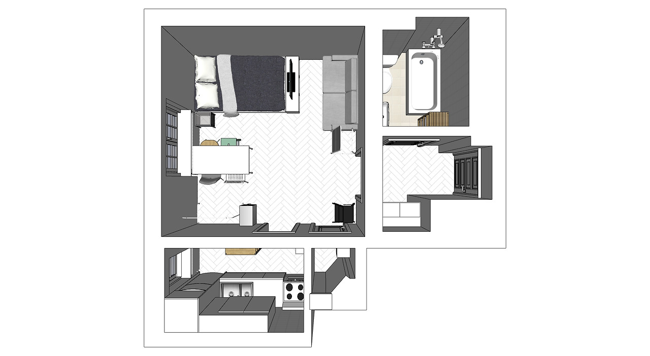 처음 집을 계약하고 이사 가기 전에 구조를 3D로 그렸다. 사실 스웨덴은 어떤 집이든 거의 필수로 평면도가 있다 하지만 나의 집은 없었고 내가 직접 시뮬레이션을 돌렸다