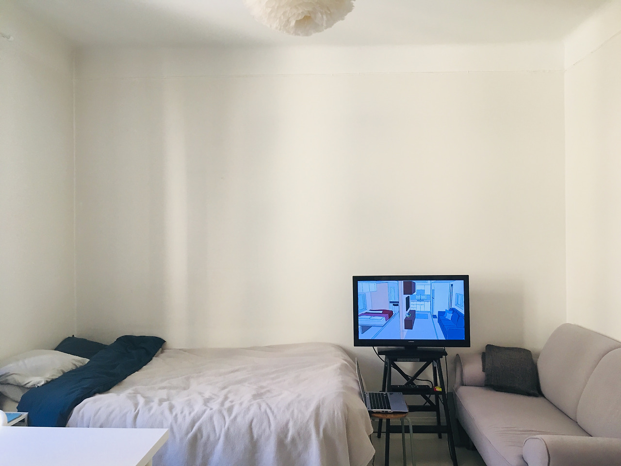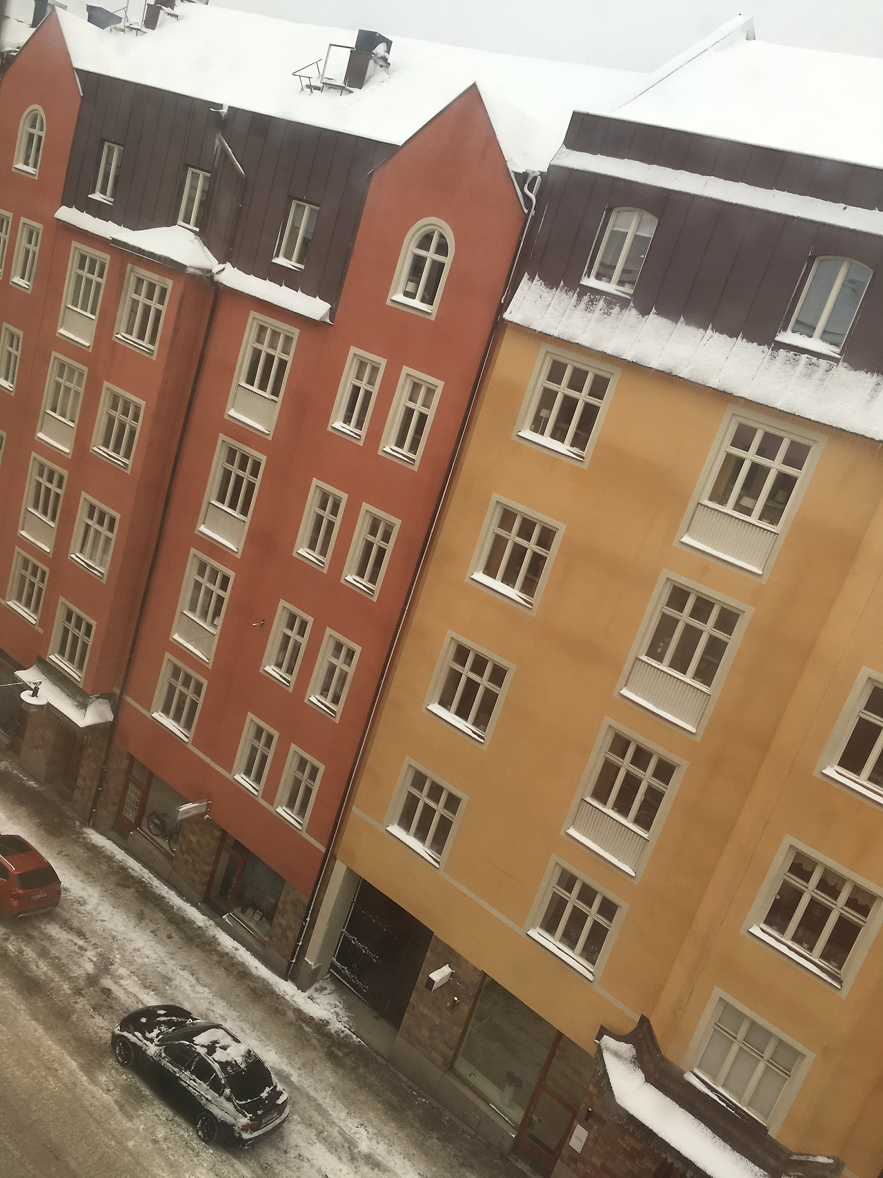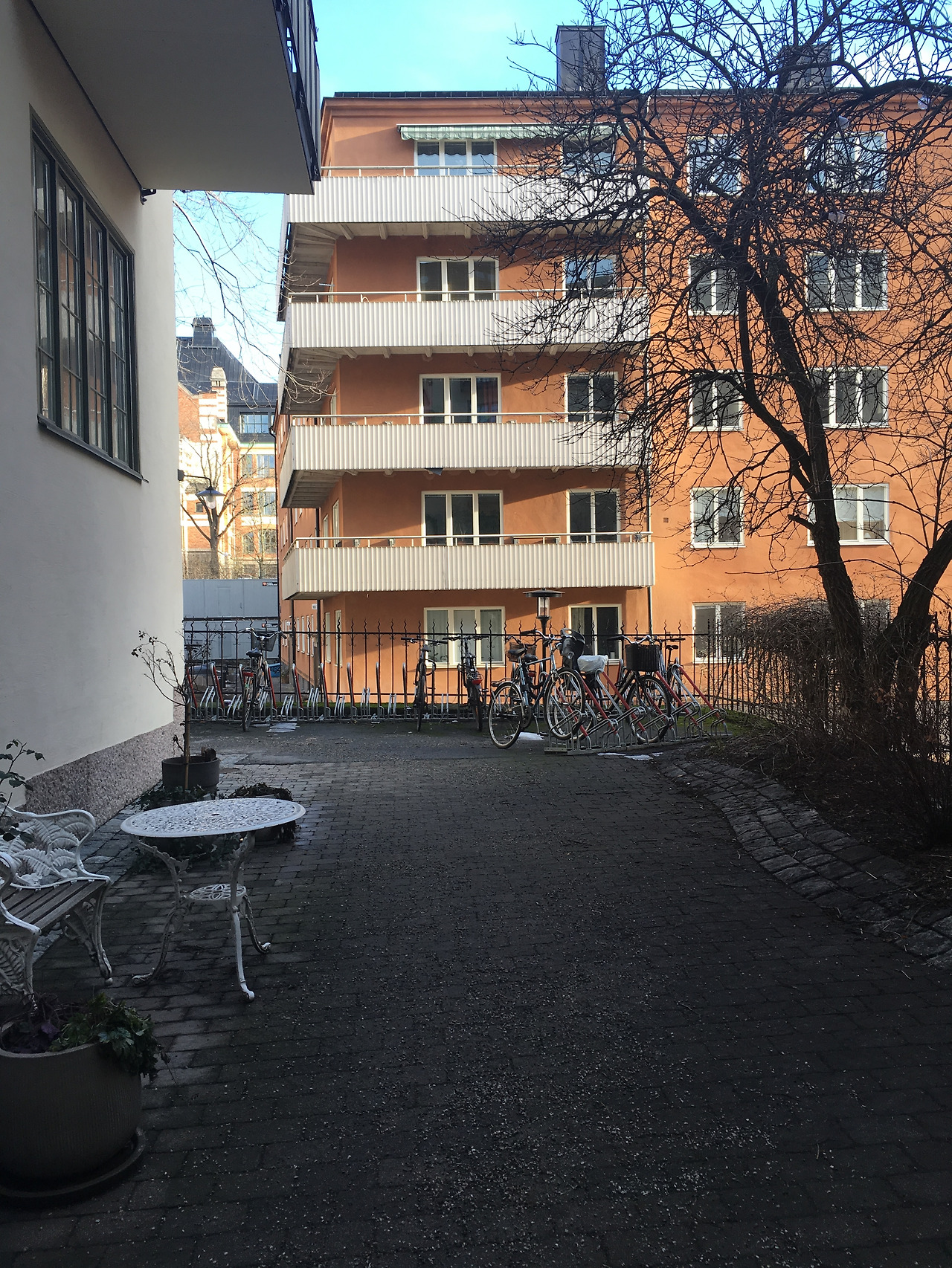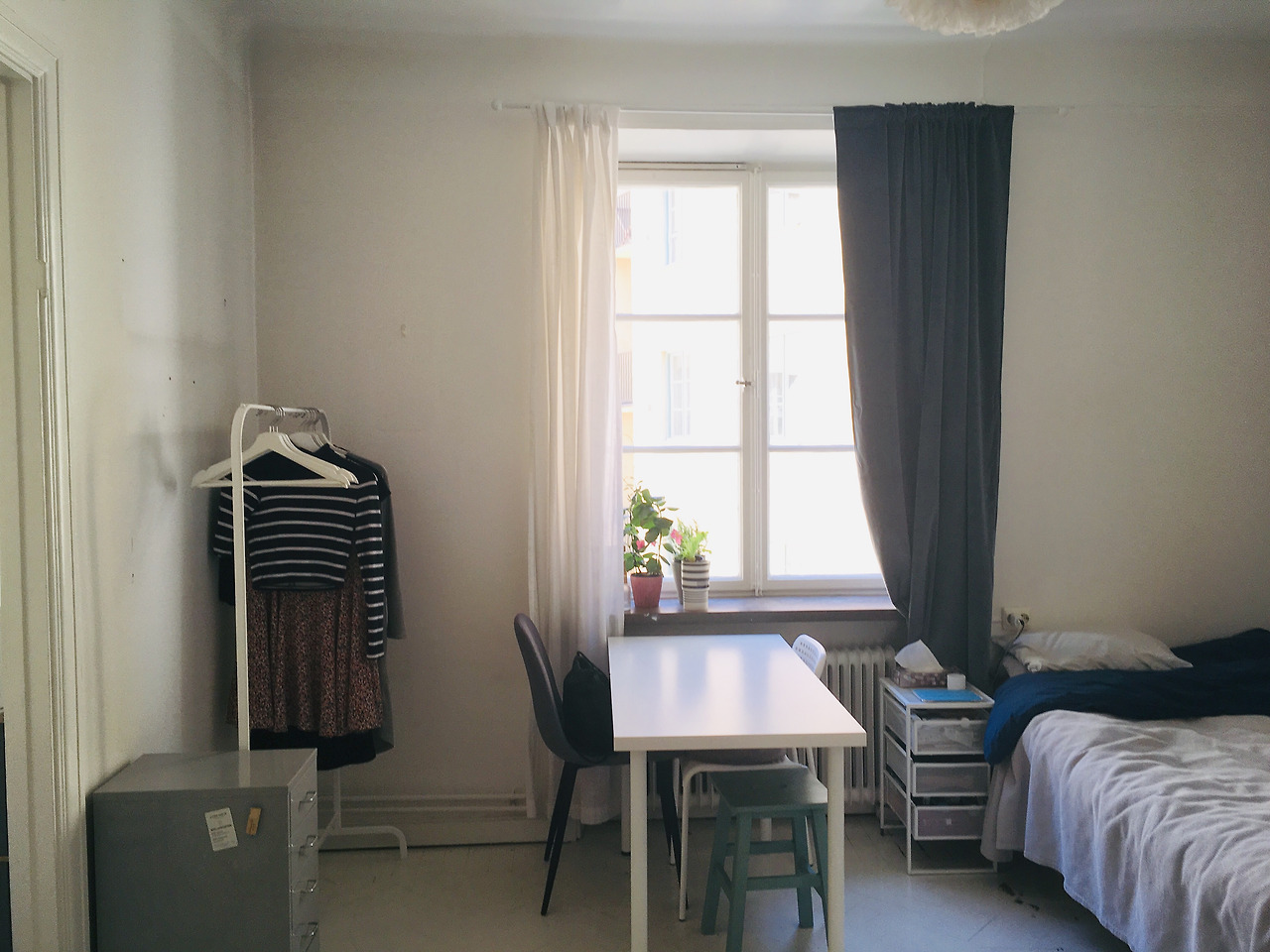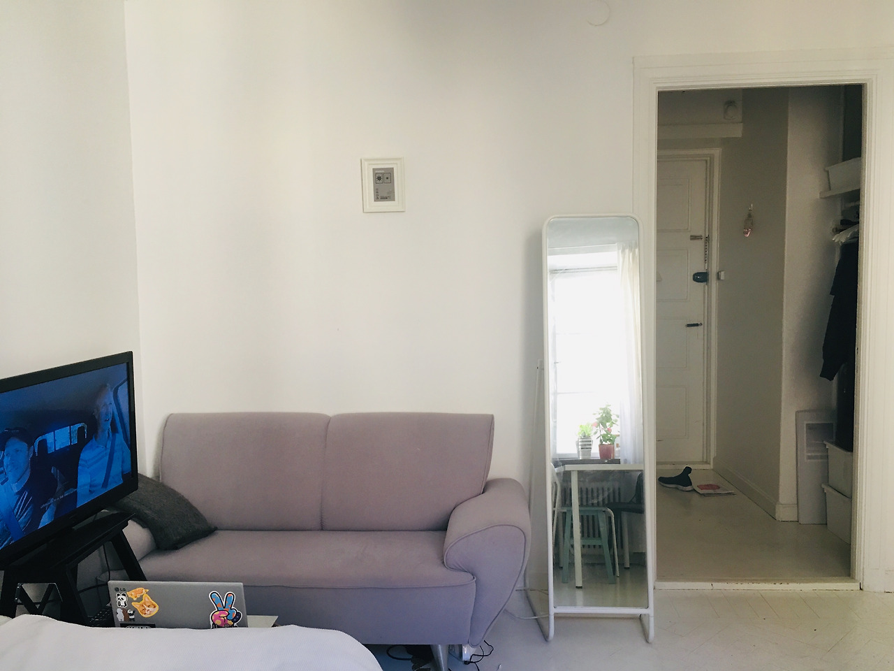 지금도 나에겐 이 집에 대한 기억은 매우 특별하다. 내가 처음 마련한 나만의 공간이자 실제적인 독립 독신생활은 한 공간이다 이 집은 15 sqm크기로 실제 크기 4.5평의 매우 작은 집이었으나 호텔식의 건식 화장실과 분리된 샤워실이 있고 천장은 3미터로 높고 아주 큰 창이 펼쳐진 100여 년이 넘은 집이었다. 게다가 스웨덴에서 드문 2분 거리에 지하철과 바로 앞에 버스정류장 그리고 바로 앞에 세븐일레븐 편의점이 있고 반대쪽으로 내려가면 바로 강이 있고 무려 스톡홀름 시청이 걸어서 15분에 있는 집이었다. 나는 갑자기 집을 구해야 해서 꽤 힘들었는데 나와 친하게 지낸 친구가 이 집을 소개해줬다. 이 집은 집주인 유니온인 사람 중에 발렌베리 성이 있을 정도로 나를 제외하고는 집주인으로 이뤄진 아파트였다 친구 덕에 여타 다른 사람들과 다르게 큰 심사 없이 집에 들어갈 수 있었다