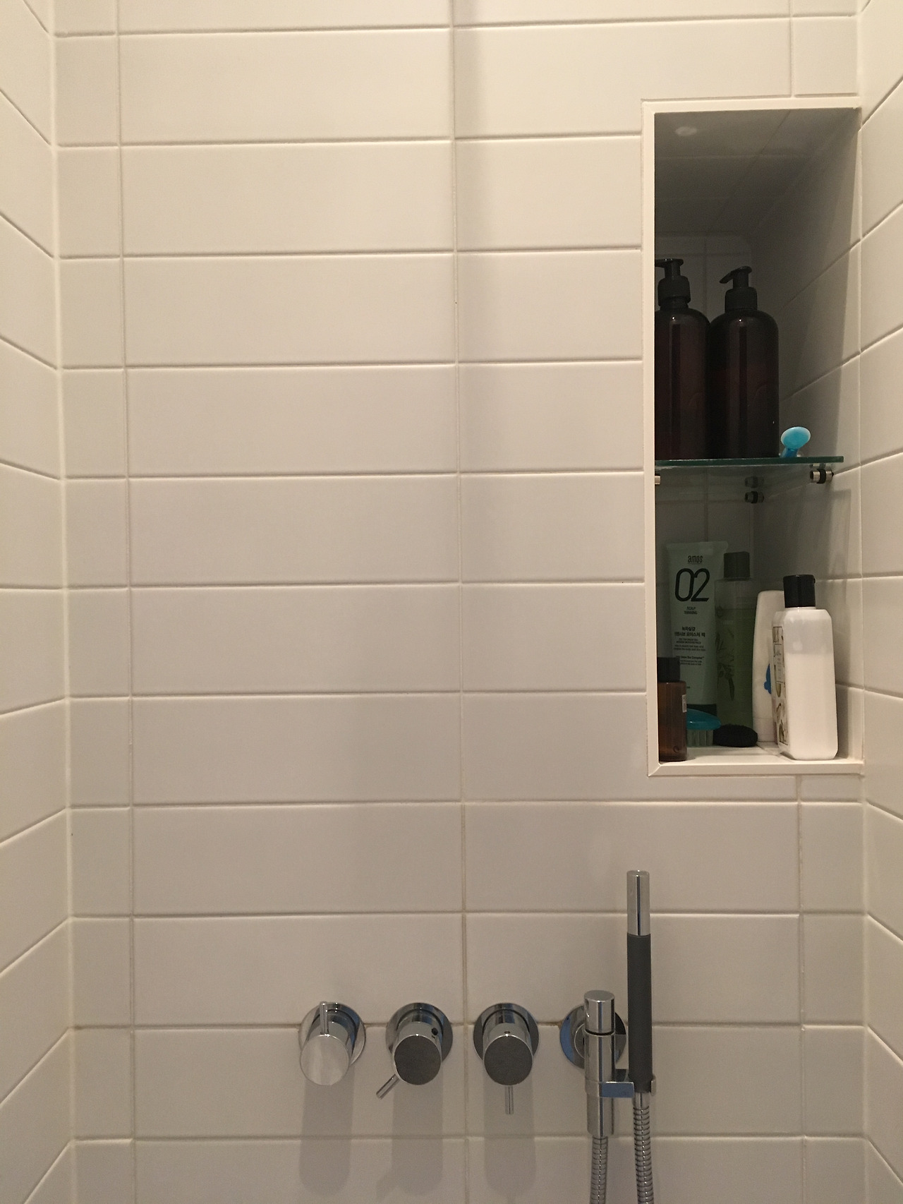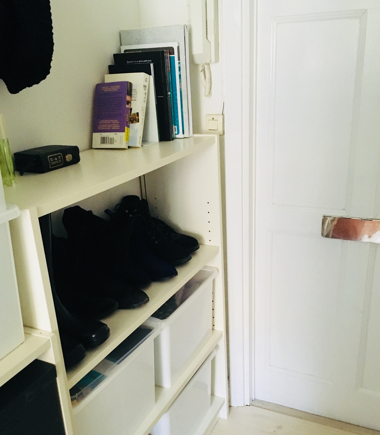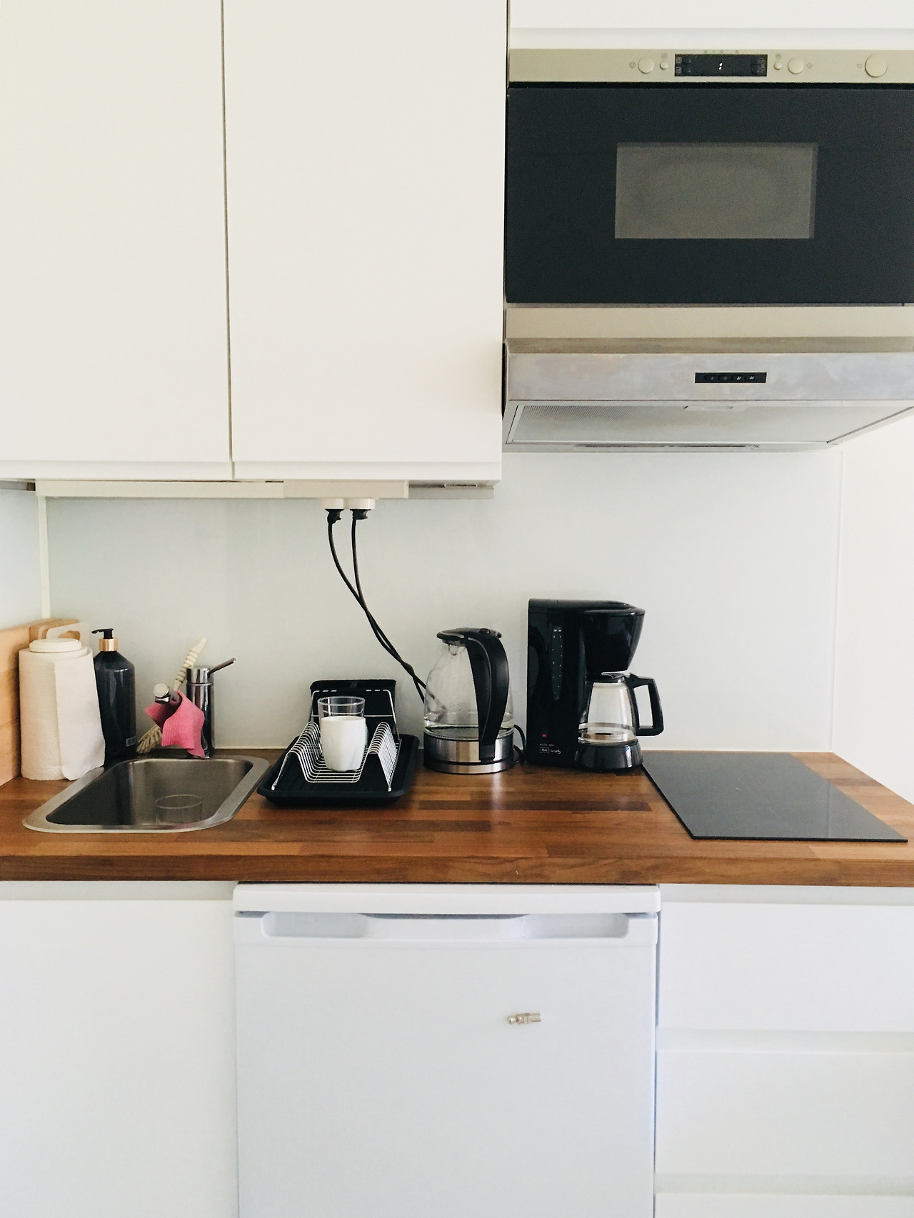 주방은 매우 작았지만 있을 것은 다 있었다 나는 여기서 매일 요리를 해 먹었다 스웨덴은 키친 높이가 우리보다 훨씬 높다 우리는 870mm가 평균인데 여기는 950 정도 되었다 신발장은 따로 없지만 책장을 활용했었다