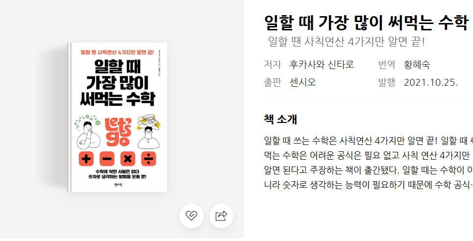 남들한테 나는 데이터 기반으로 분석하고 의사결정을 내리는 걸 좋아해요~ 라고 말하지만, 솔직히 말해 아직 잘하는 단계는 아닌 것 같다. 당장 나한테 XX브랜드사의 이번달 매출 전망, 이번년도 매출을 전망하라고 하면 막힘없이 술술 얘기가 나오진 않고 머리가 멈추기 때문이다. 어떻게 하면 물 흐르듯 자연스럽게 숫자로 생각할 수 있을까를 고민하다, 최근에 '일할 때 가장 많이 써먹는 수학'이란 책을 접하게 되었는데 많이 도움이 되어 간략하게 브런치에 글을 남기게 되었다.