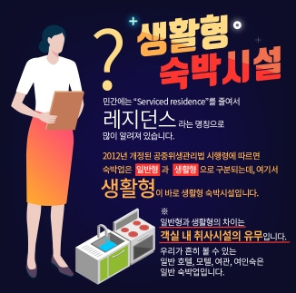 생활숙박시설이란 흔히 ‘레지던스’라고 불리던 시설로 상업지역에 지을 수 있는 주거시설이다. 법적으로는 건축법에서 정한 숙박시설로 공중위생관리법 시행령에 의해 취사와 세탁이 가능한 숙박시설로 정의되고 있다.