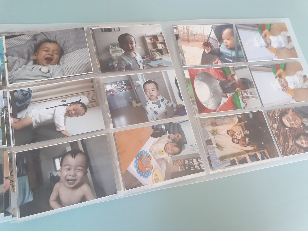 아이는 심심할 때마다 앨범을 열어 사진 구경하기를 좋아한다. 나 역시 그 사진들을 찬찬히 살펴보면서 추억에 젖는다. 불과 1년이 좀 더 지났을 뿐인데 아주 옛날 일처럼 느껴지기도 하고 낯설게 다가오기도 한다. 그만큼 아이는 빨리 자란다. 이렇게 가만히 누워서 모빌만 쳐다보던 시절도 있었지, 이 때는 이가 두 개만 났었네, 하며 사진이 데려다준 추억 속으로 잠시 빠져본다. 입가에 슬쩍 미소가 지어진다. 사진이 없었더라면 머릿속에 흐릿한 기억으로 잠시 머물다 이내 사라져 버렸을지도 모르는 아이와 나의 일상들. 이 작은 앨범이 지금뿐 아니라 10년, 20년, 그 후에도 지난날들을 되짚어 볼 수 있는 시간 상자가 되어 줄 거다.