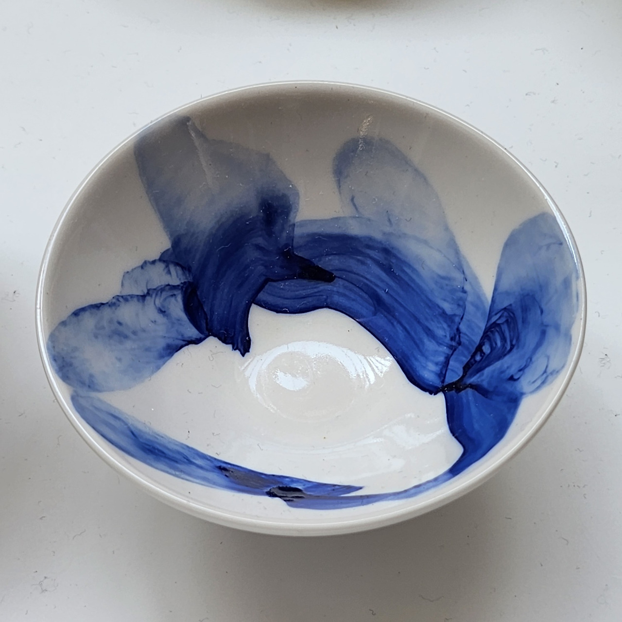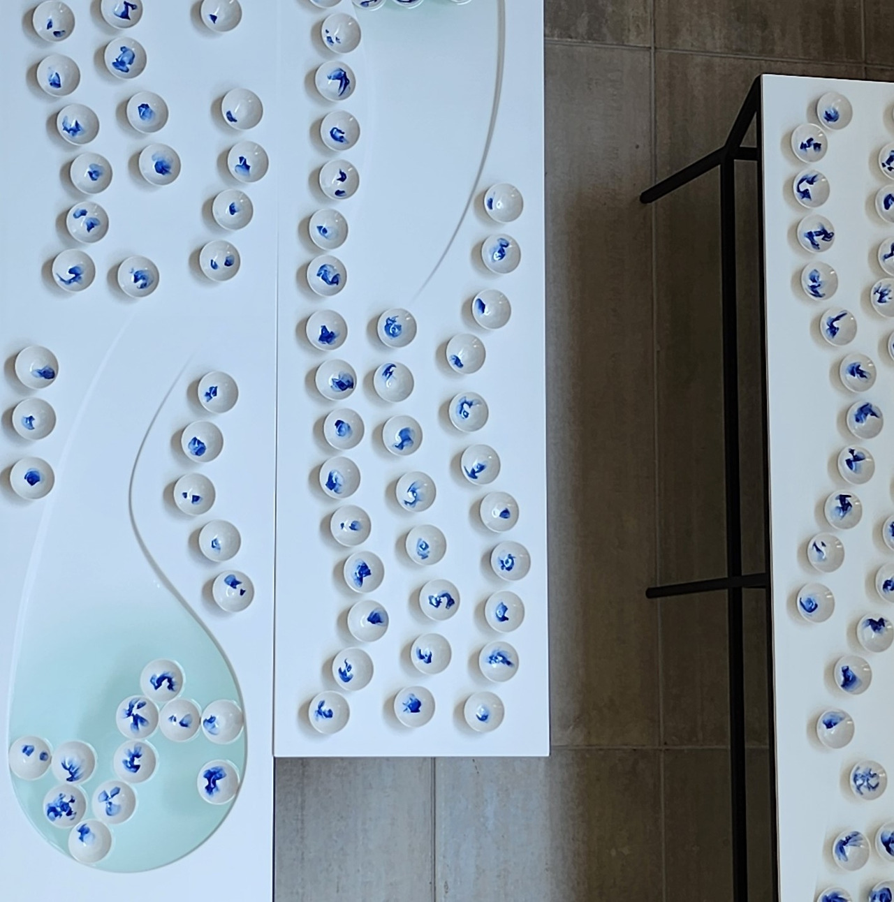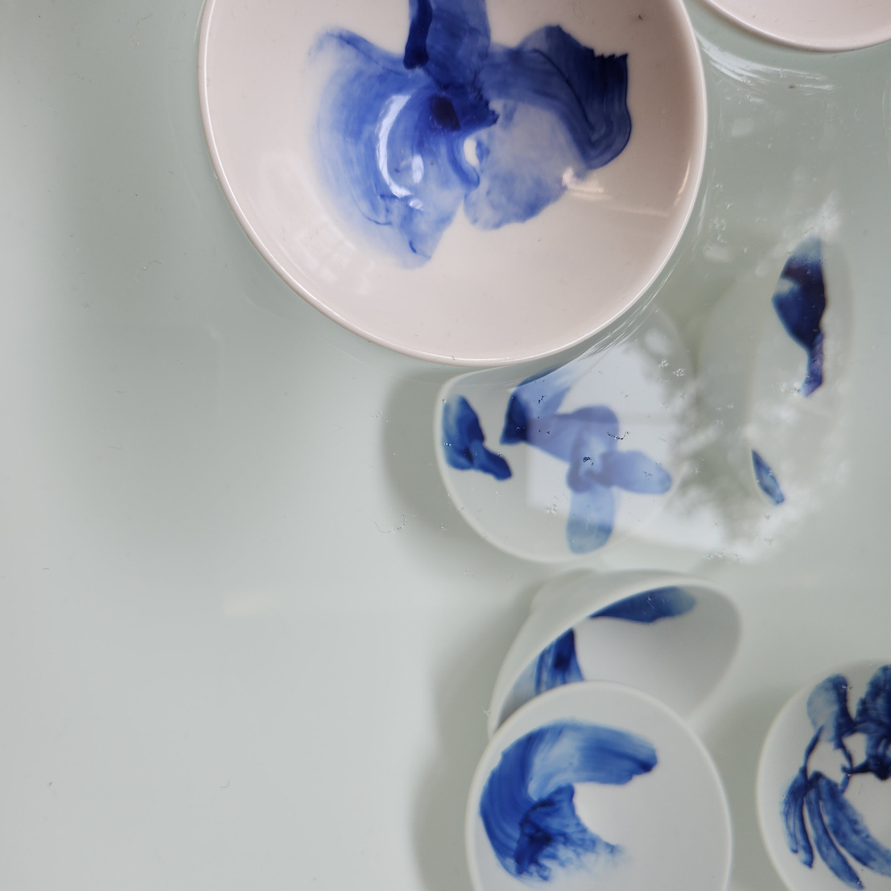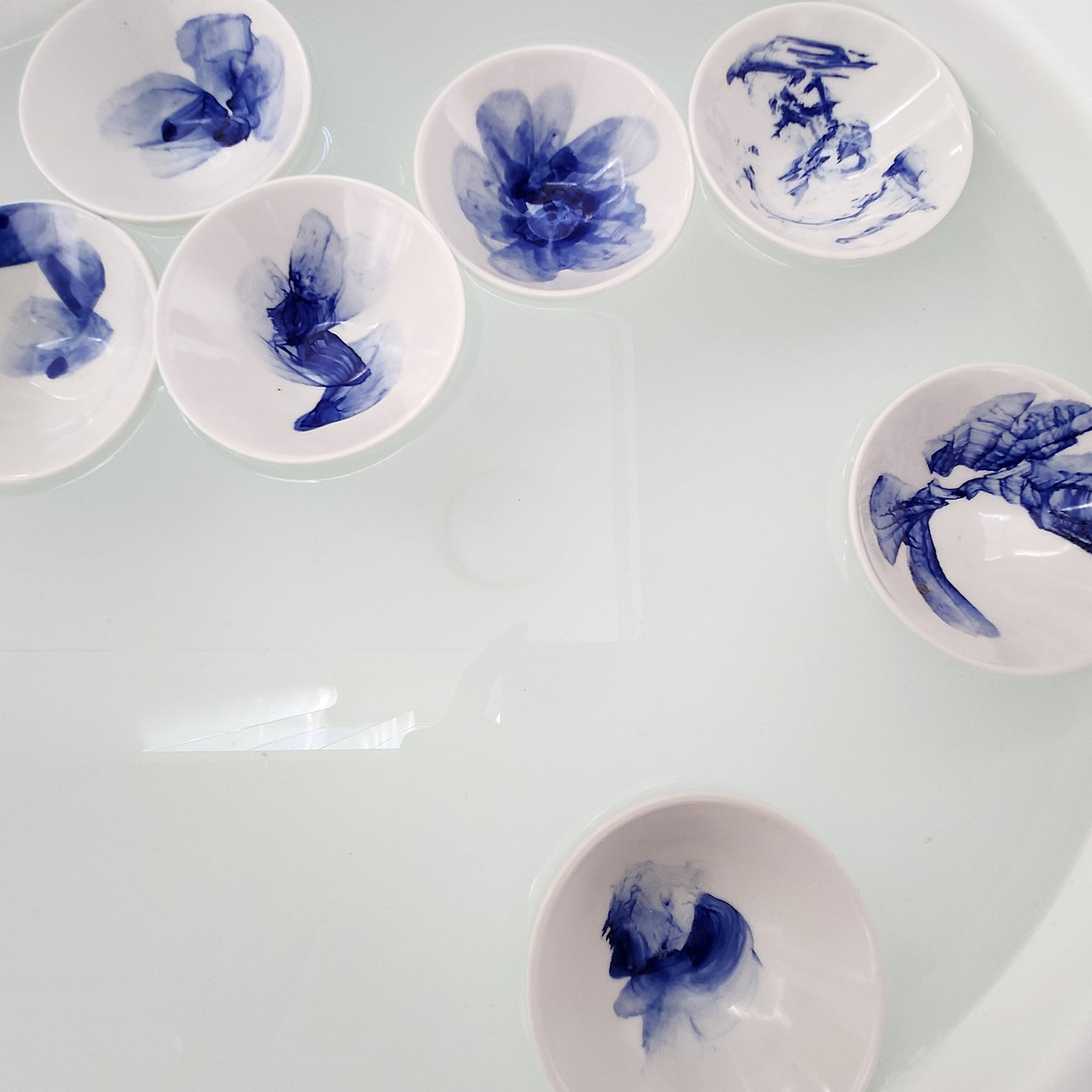 천 개의 도자기 찻잔에 푸른빛 물소리를 직접 그렸다.